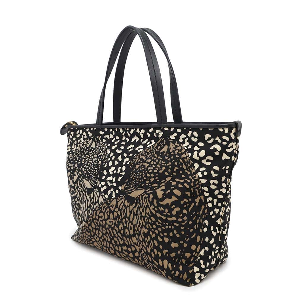 Ferragamo Gancini Tote Bag Black/Beige/Brown Nylon Canvas Leather