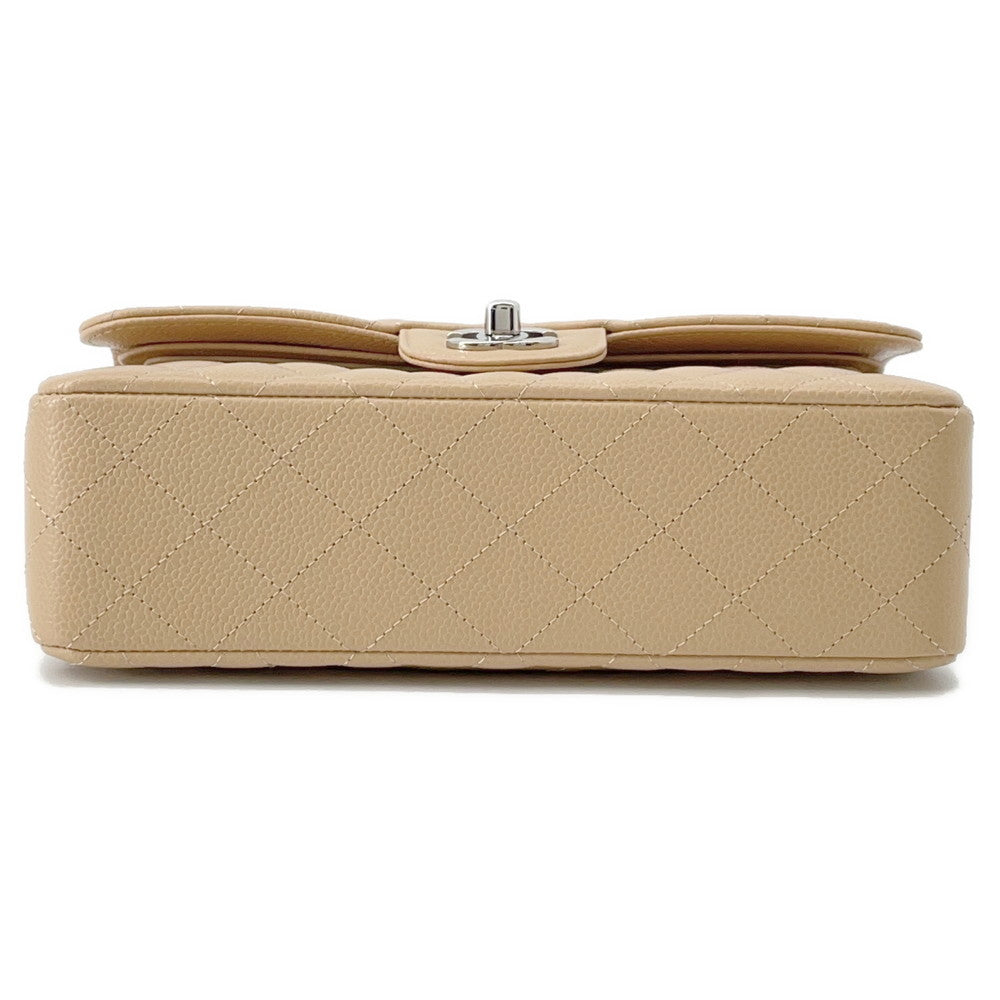 CHANEL Matelasse W Flap ChainShoulder Bag BeigeA01113 Caviar Leather Size 23