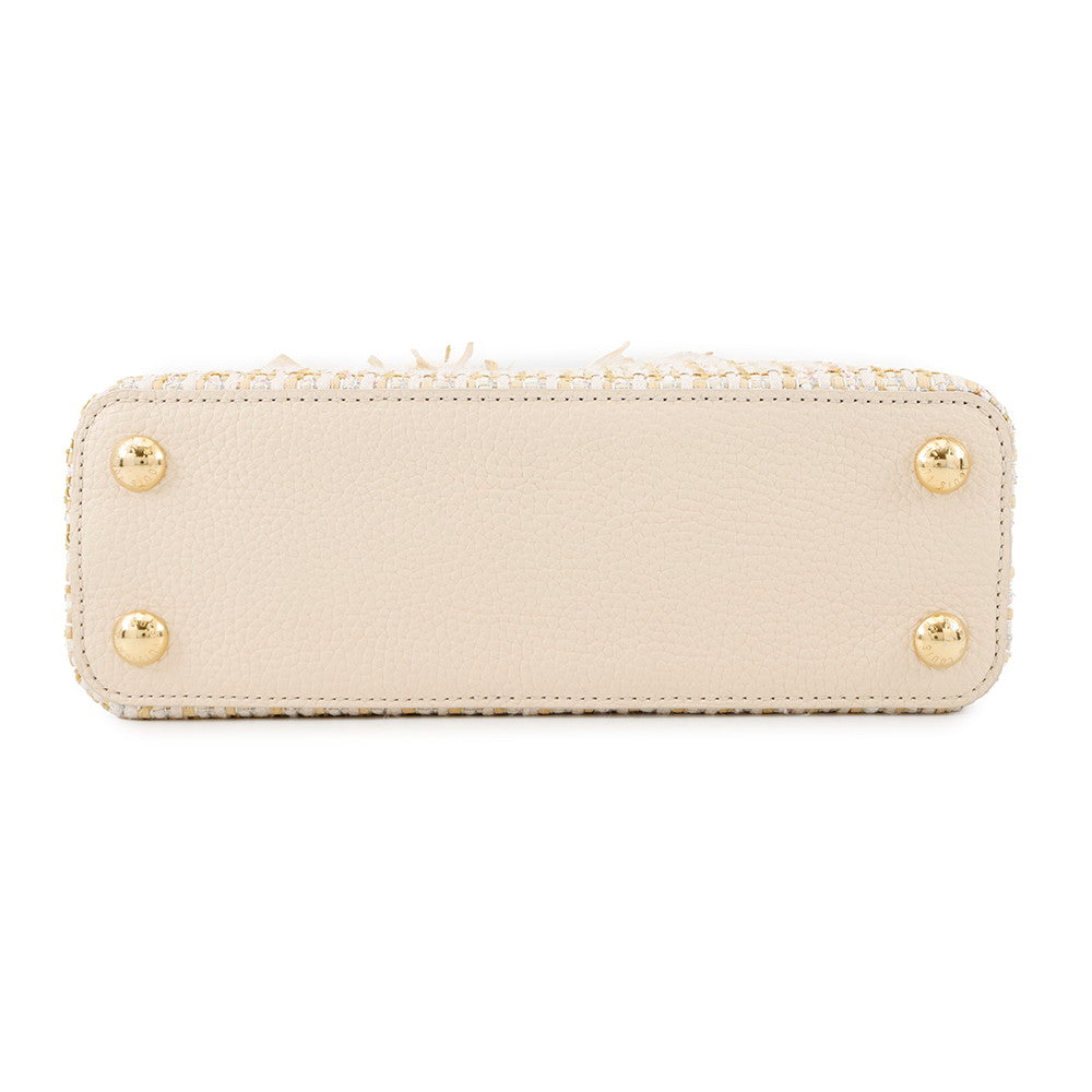 LOUIS VUITTON Capucines BeigeM22181 Tweed Raffia Cotton Ribbon Lurex Yarn Size BB