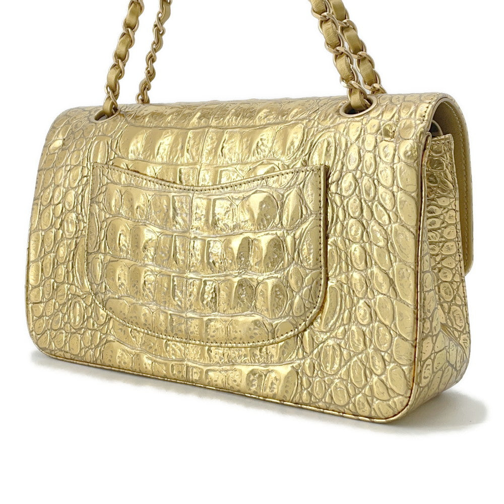 CHANEL Double Flap ChainShoulder Bag GoldA01112 Embossed Leather Size 25