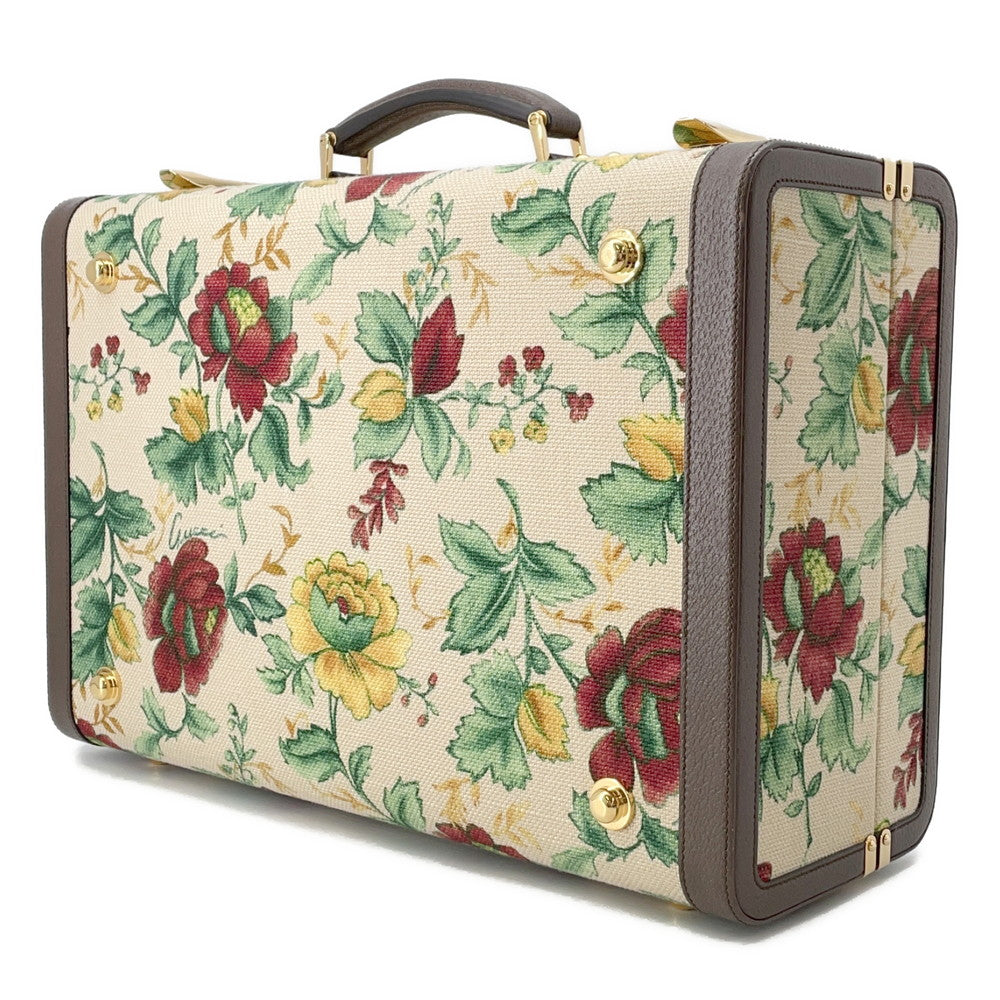 GUCCI Flora Double G Trunk Beige/Multicolor722179 Canvas Leather Size Medium