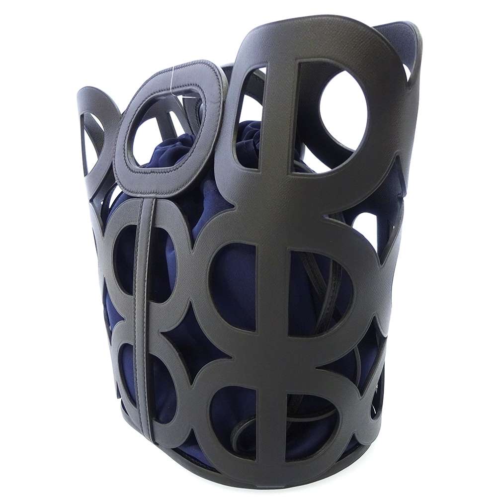 HERMES Chaine d'Ancre Black/blue Madame Calf Leather ・Silk