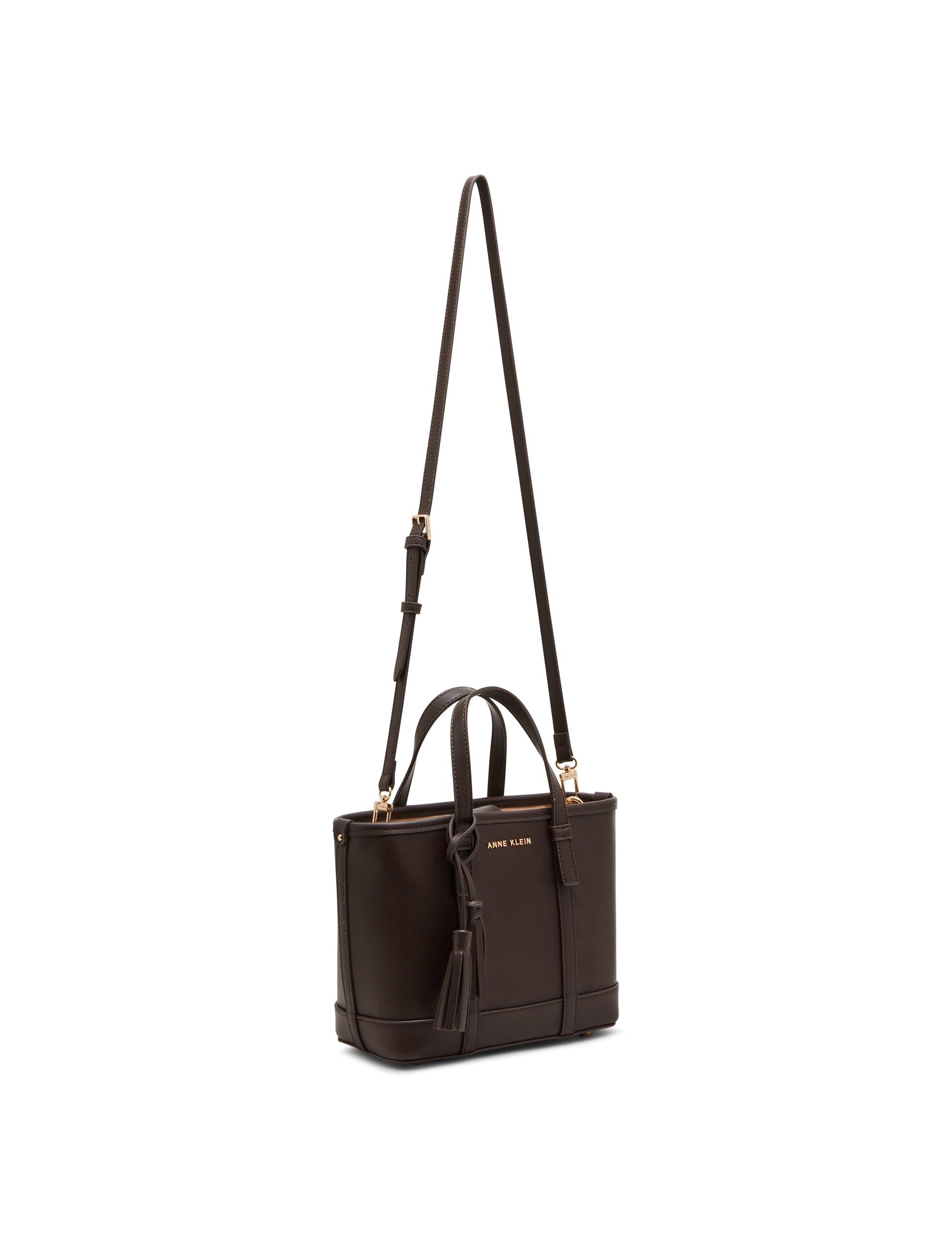 An AK team favorite, this mini tote displays a beautiful yet simplistic design that will make it your outfit goto. Wether you're going to brunch or into the office this bag is a perfect balance of fashion and practicality. This mini tote comes with a crossbody strap, a pouch and not one but two dangles including a detachable card case and a double tassel.