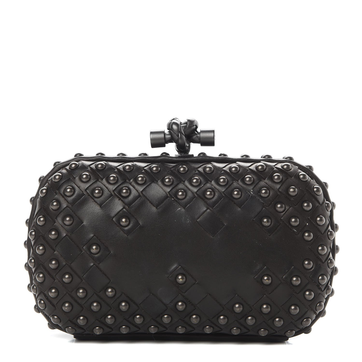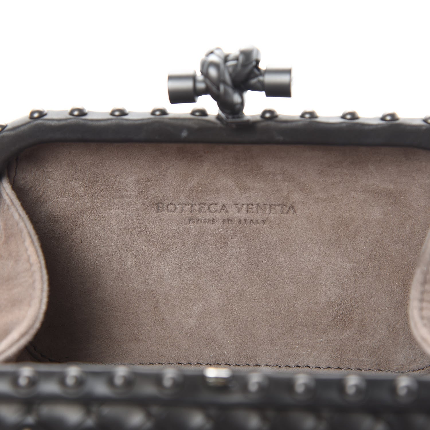 BOTTEGA VENETA WAXY NAPPA INTRECCIATO KNOT STUDDED CLUTCH BAG