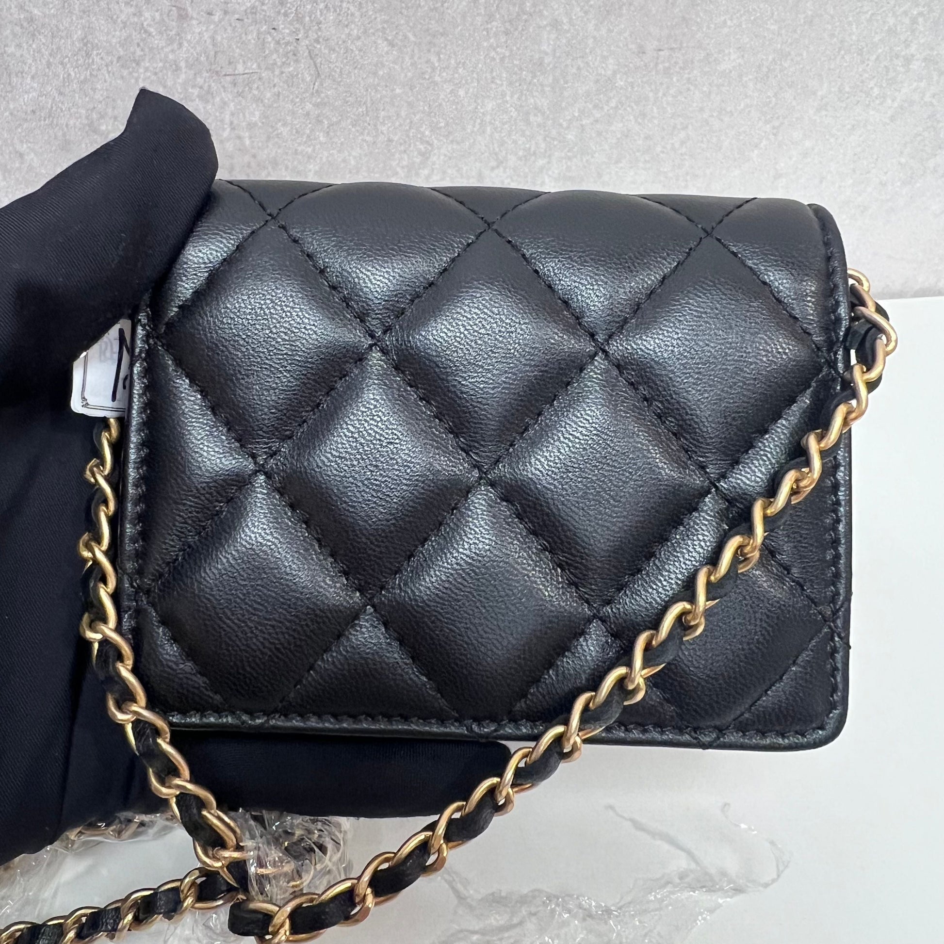 Explore the world of designer handbags with this Chanel Black Mini Bag from the renowned Chanel Classic line. This timeless piece showcases the elegance of vintage Chanel bags, crafted from luxurious black leather with a sophisticated quilted pattern and adorned with gold hardware. With a compact size of 6.7 x 5.1 x 3.1 inches, this mini bag is perfect for any occasion. Its sleek black fabric lining ensures your essentials are kept secure under a stylish flap closure. Meticulously ated by Entrupy, this bag exemplifies Chanel's enduring allure. A must-have for those who adore vintage Chanel bags and collectible designer handbags.