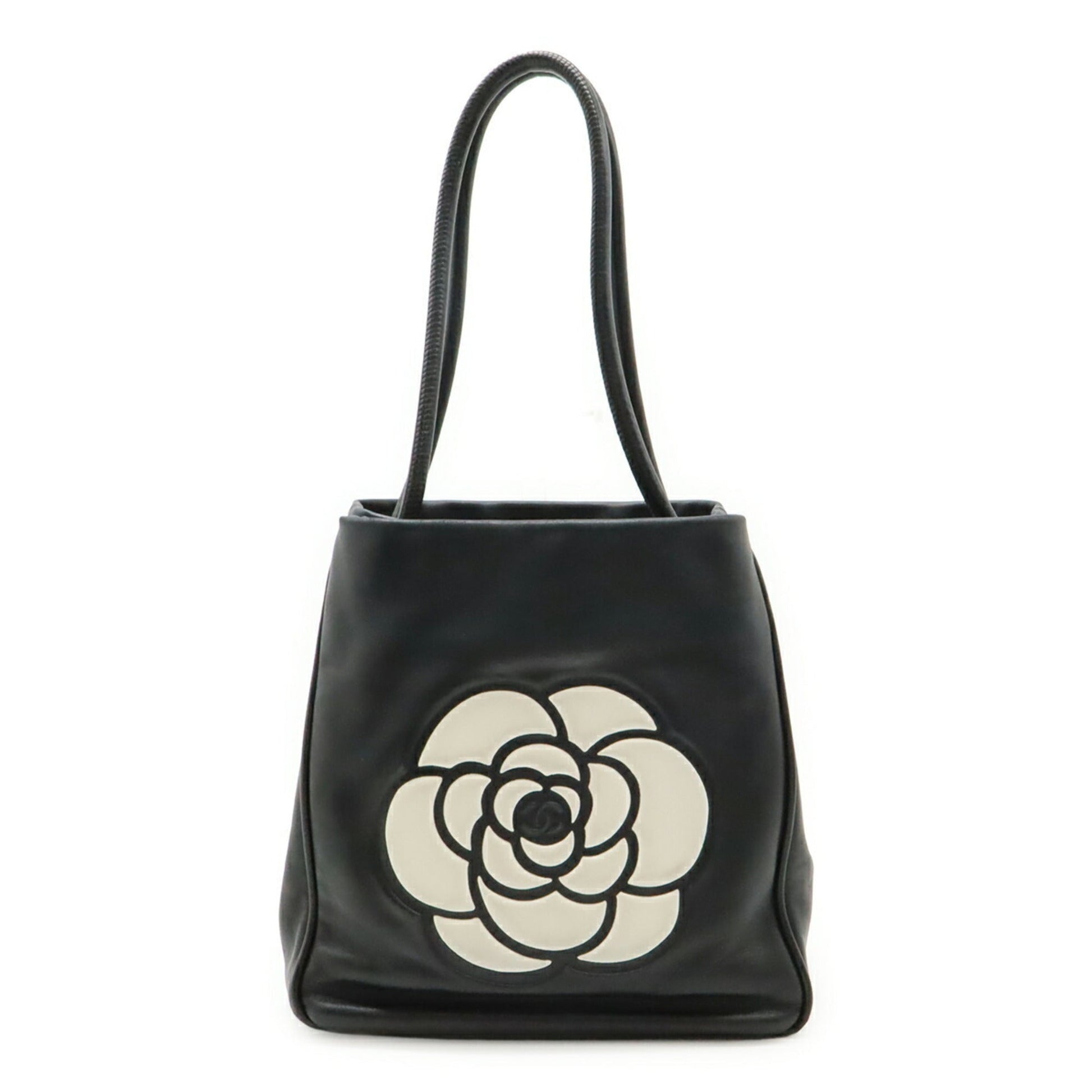 Chanel Black White Leather Shoulder Bag Tote Bag