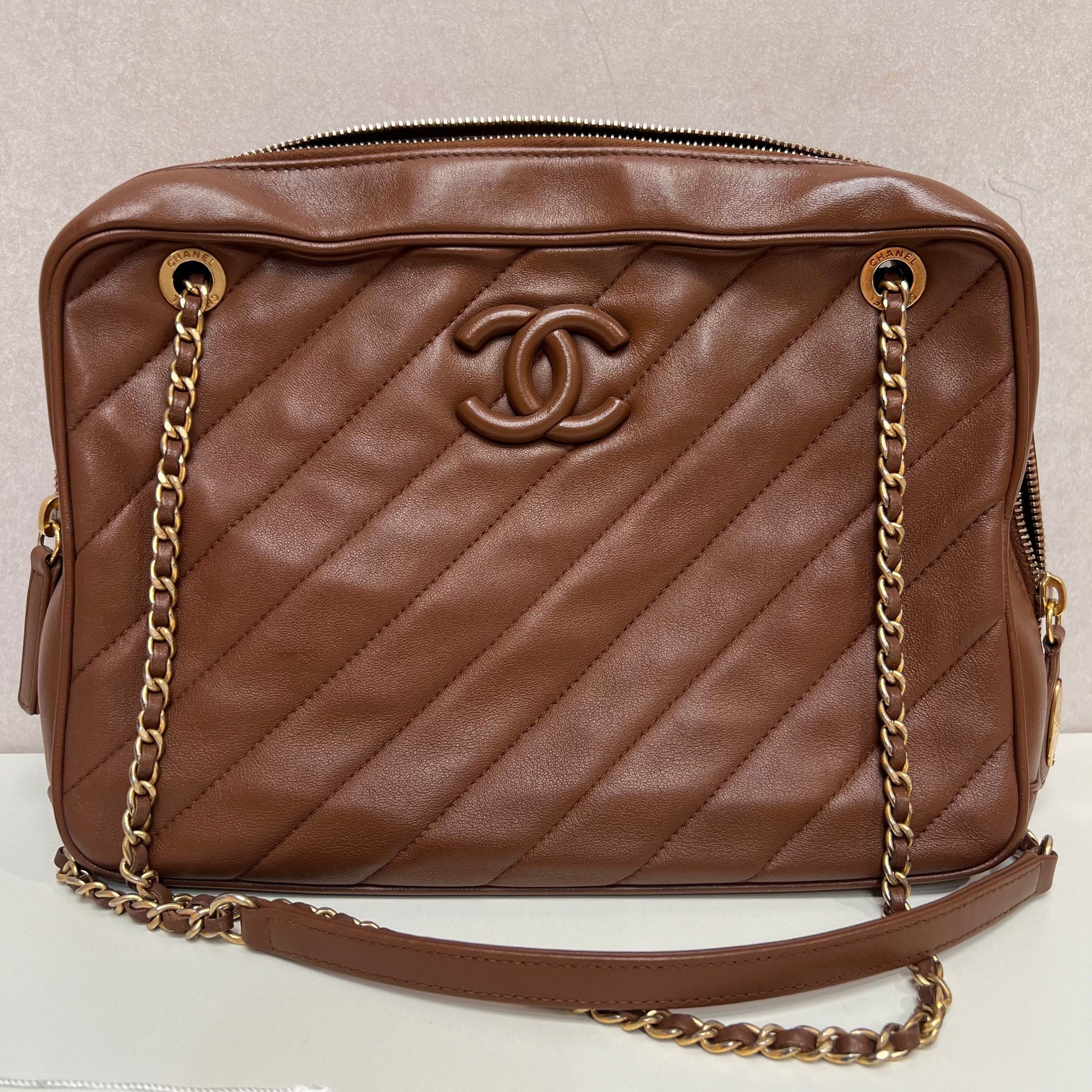 This Chanel Brown Diagonal Quilted Leather CC Covered Signature Flap Bag is a timeless piece of elegance for those who love sophistication and style. Crafted from luxurious brown leather, it flaunts a chic diagonal quilted pattern with the iconic CC logo and gold hardware accents, appealing to vintage Chanel bag enthusiasts. Its small yet practical size of 6" x 10" x 3" makes it a standout among designer handbags, offering both functionality and flair. Perfect for the fashionable woman who appreciates classic design.
