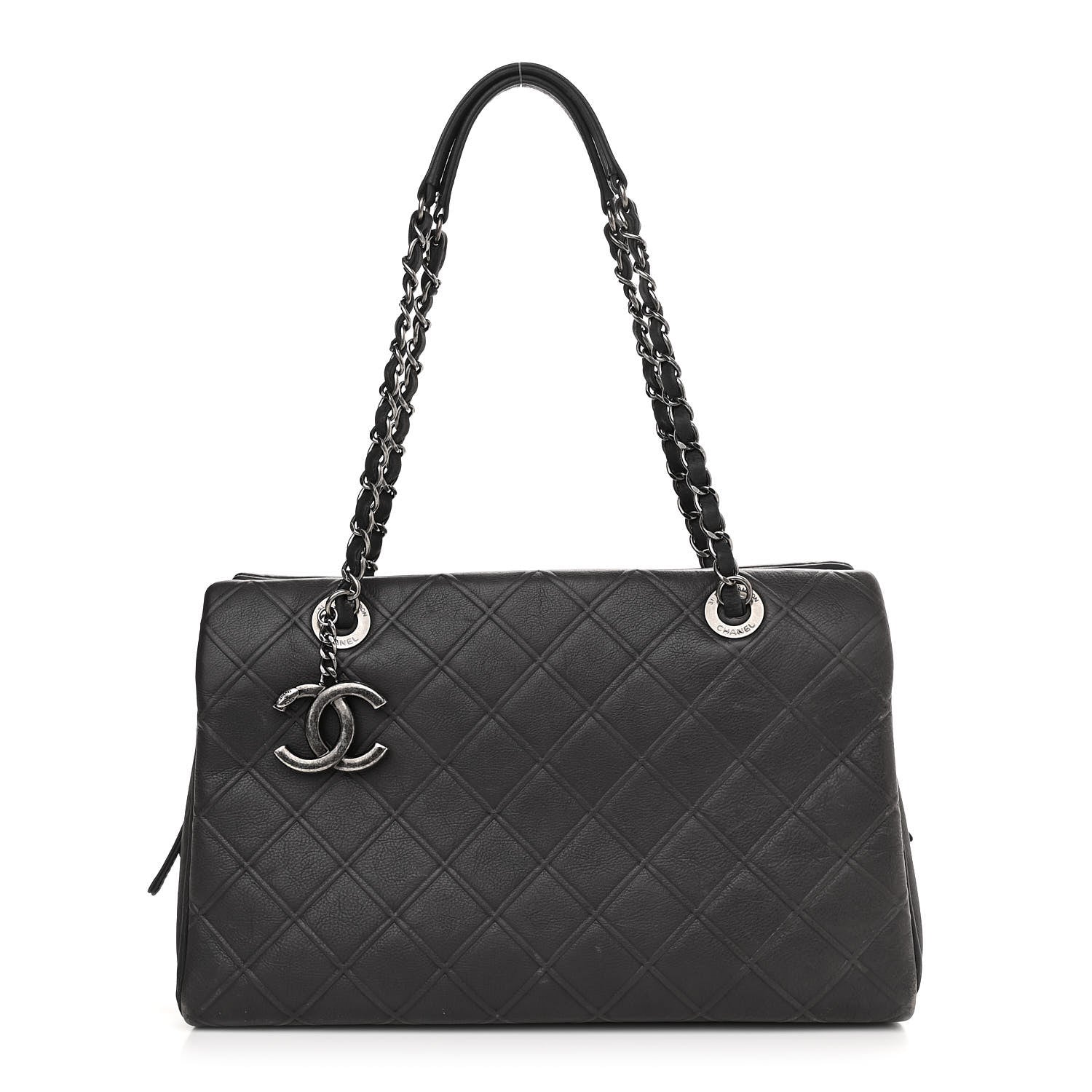 CHANEL CC DIAMOND QUILTED CALFSKIN LEATHER SHOPPER TOTE BAG