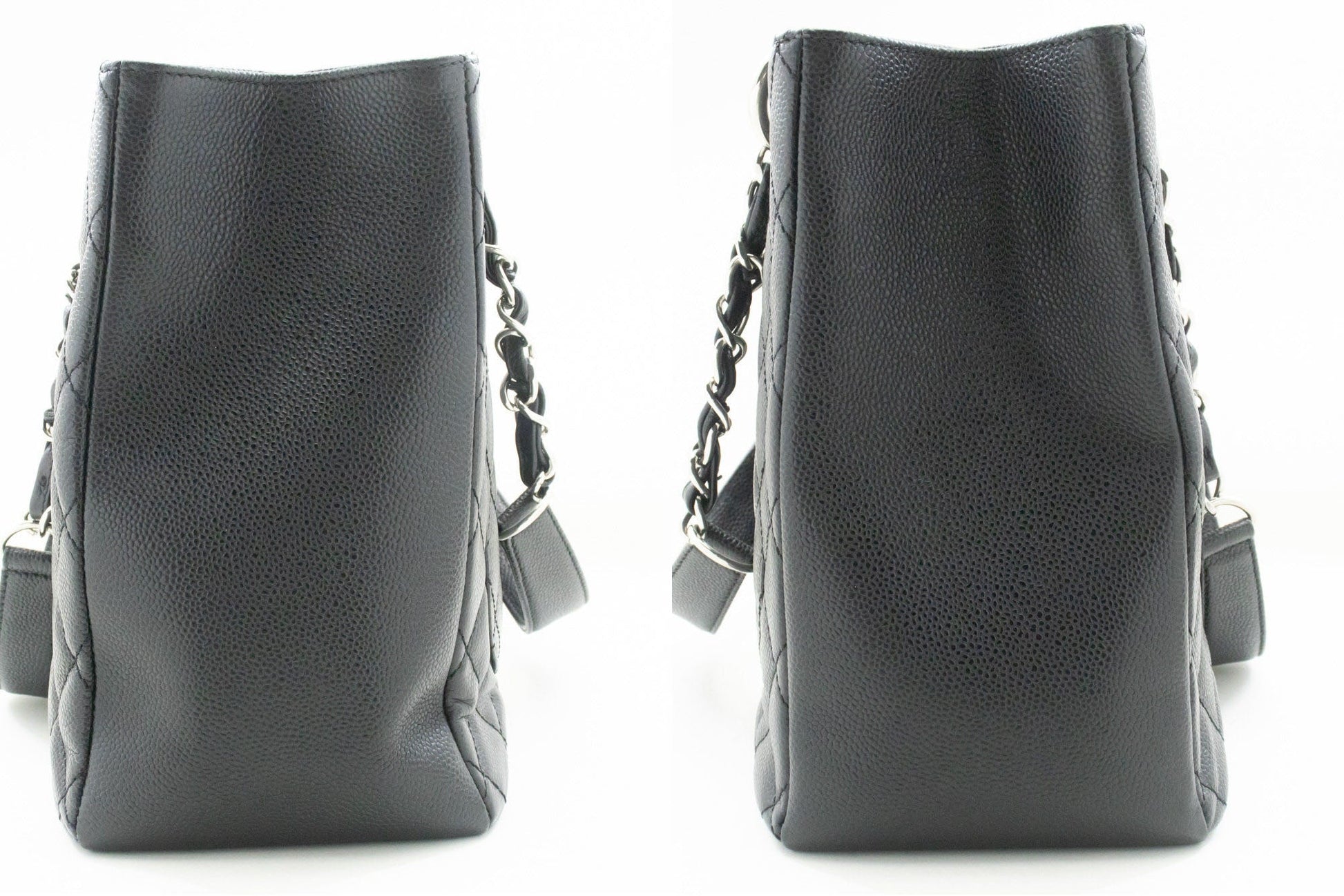 Brand: Chanel Model: Grand Shopping Color: Black Material: Leather Inclusions: Dimensions: W 33.3 cm x H 24.1 cm x D 12.8 cm strap drop: 22.2 cm Serial number: 16755559 Country of origin: Italy Condition: AB - good condition. Outside condition : minor stain, slight rubbing Inside condition : minor stain Handle condition : minor scratch Corner condition : slight rubbing Metal fittings condition : minor scratchItem #: CHANE96322