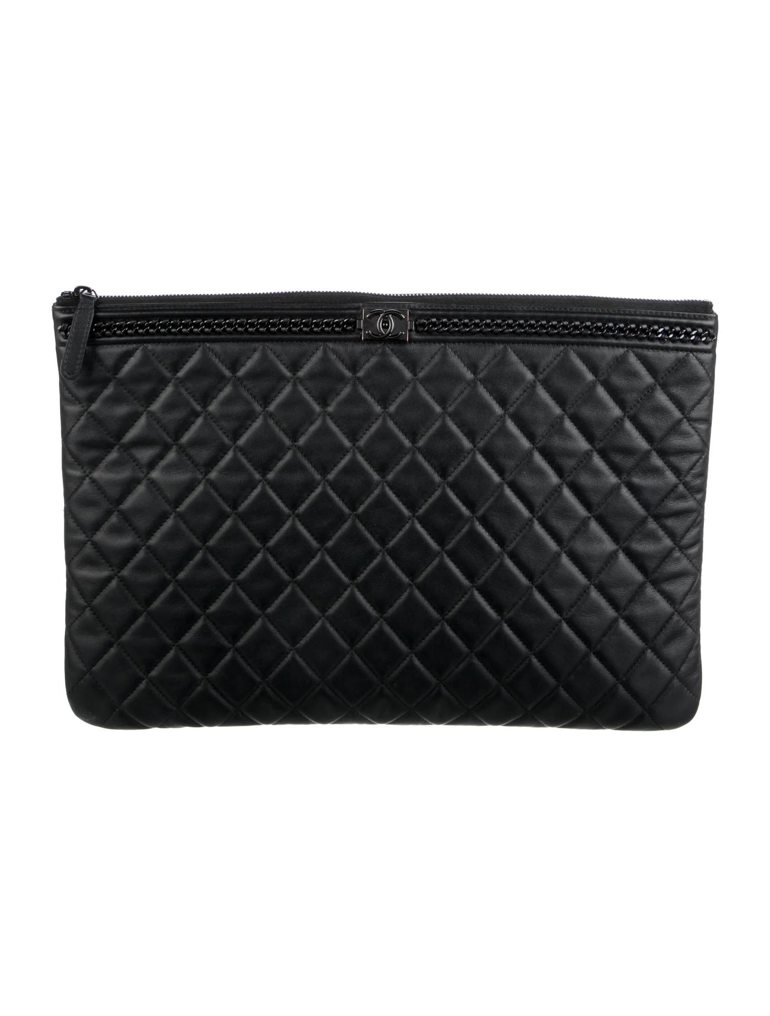 - Interlocking CC Logo, Quilted Pattern & Chain-Link Accent