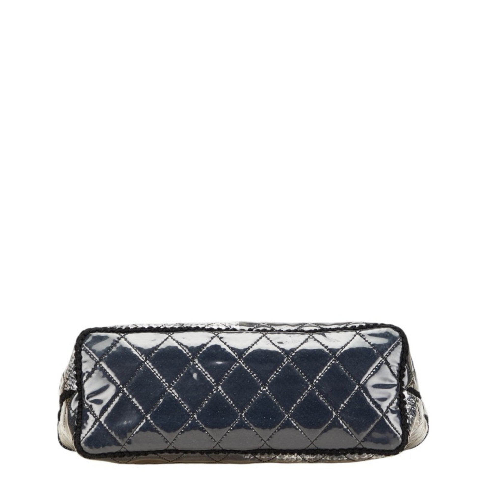 Chanel Matelasse Black Gray Vinyl Tweed Handbag Tote Bag