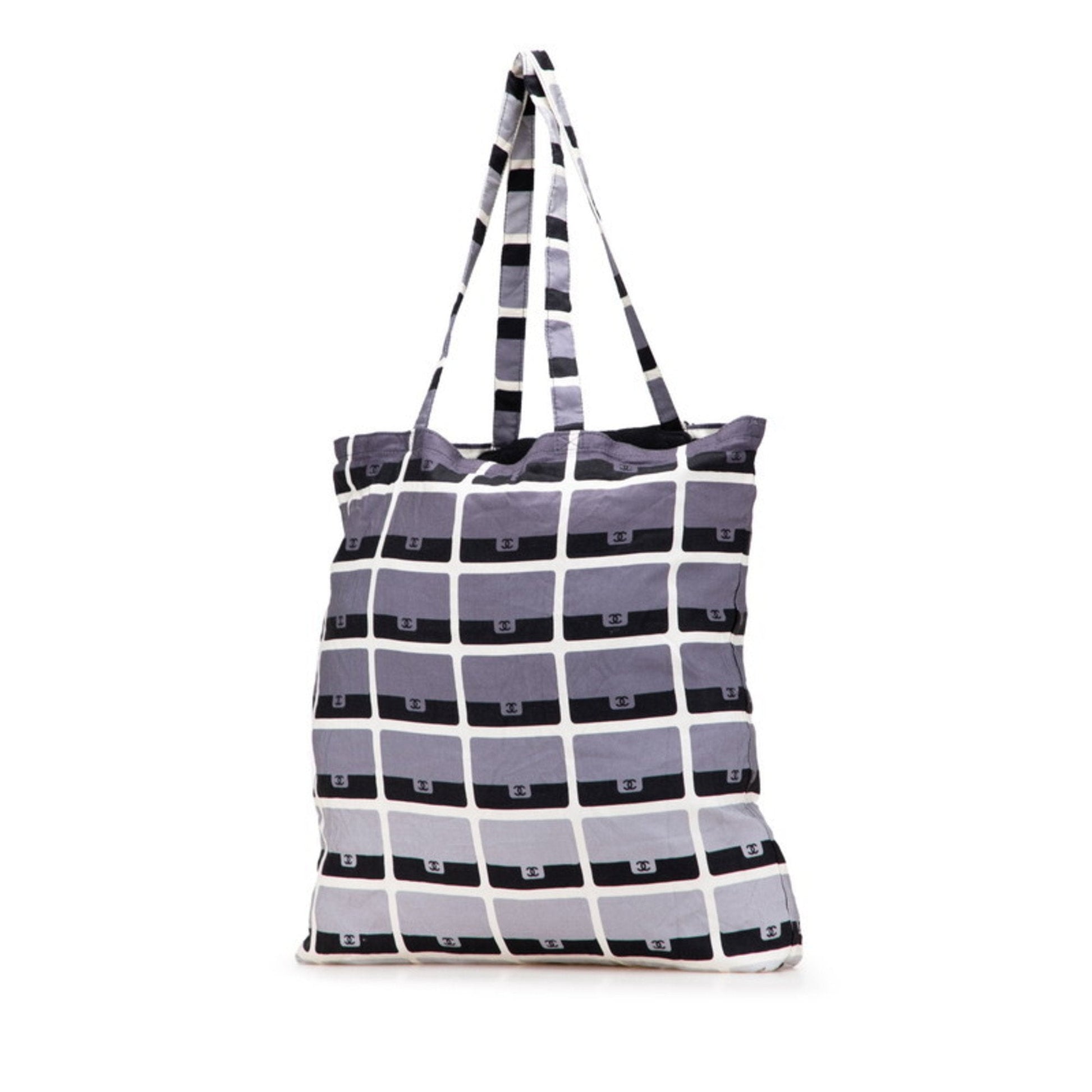 Brand: Chanel, Color: Black, Gray, White, Material: Cotton, Dimensions: 37cm x 35cm x 5cm / 14.56'' x 13.77'' x 1.96'', Condition: Rank A. Rank A Used - A few traces of usage, some scratches / dirt can be seen but overall in very good condition. Before purchasing, please refer to the images for the exact condition of the item. Before purchasing, please refer to the images of the accessories included with the item.Item #: