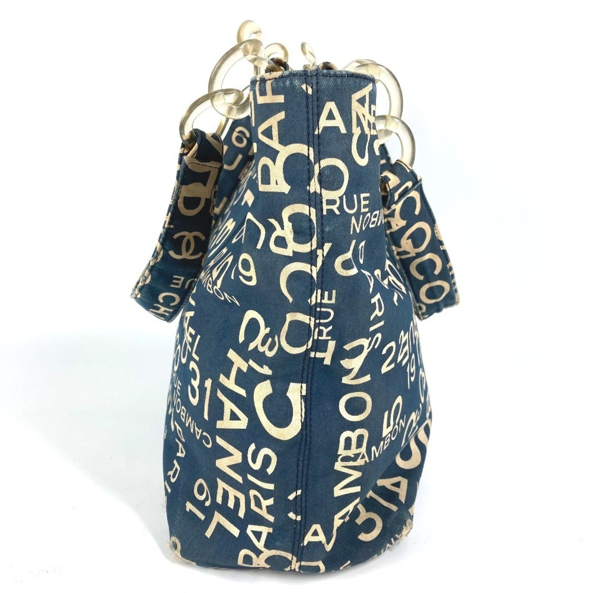 Chanel Navy Yellow Canvas Pouch Shoulder Bag Tote Bag