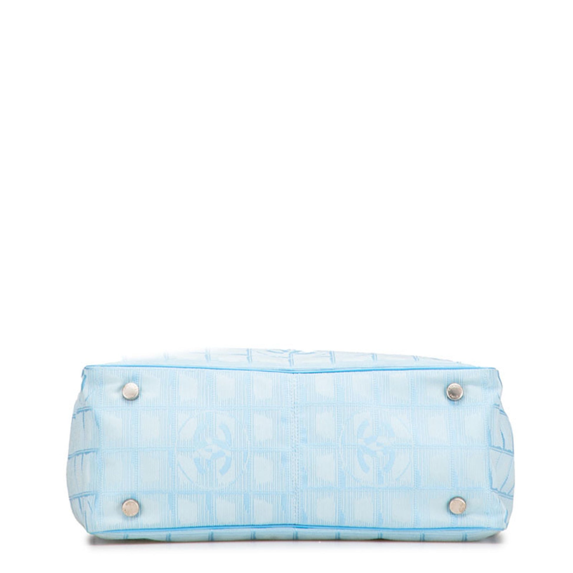 Chanel New Travel Line Blue Nylon Leather Handbag Tote Bag