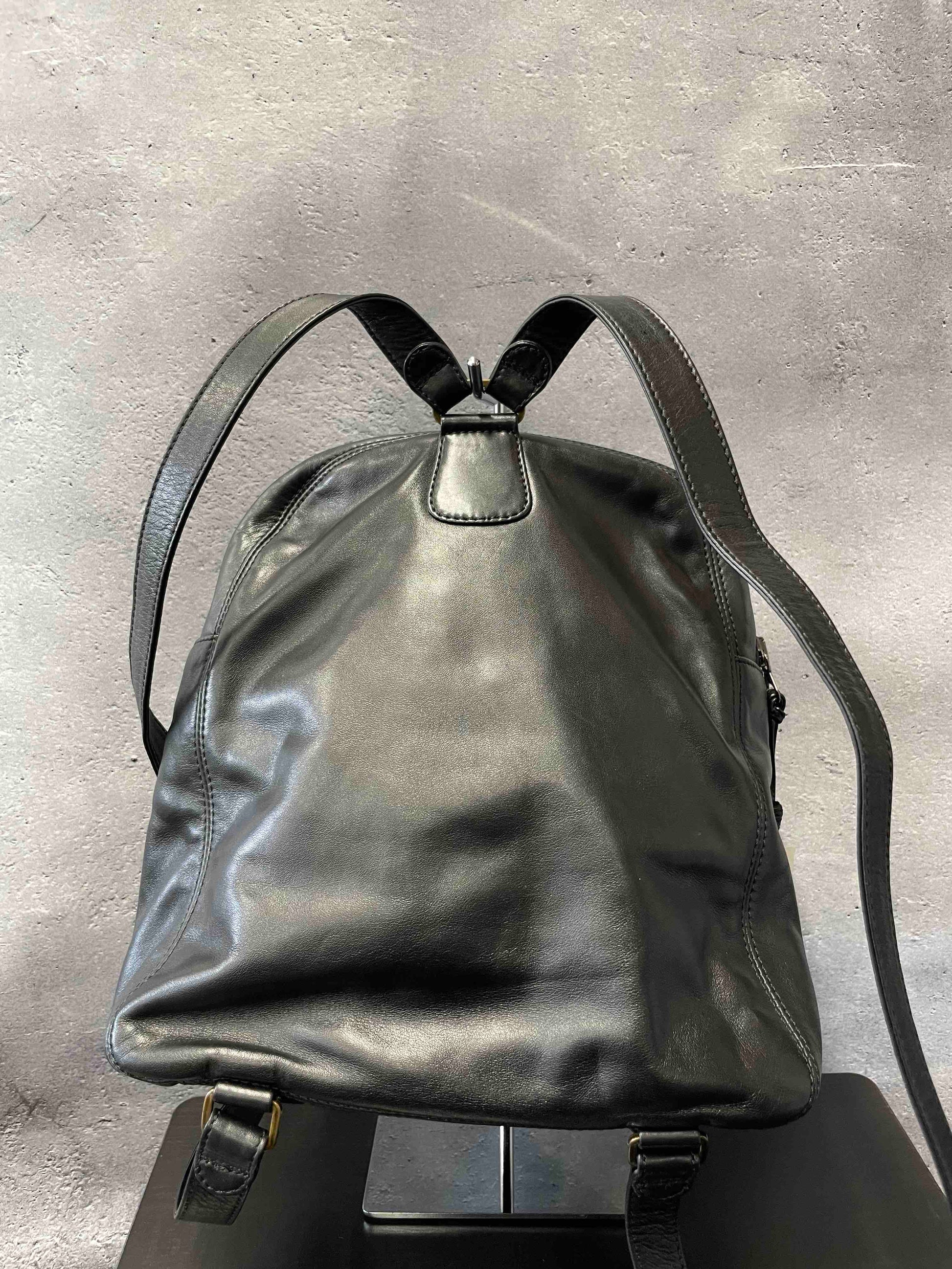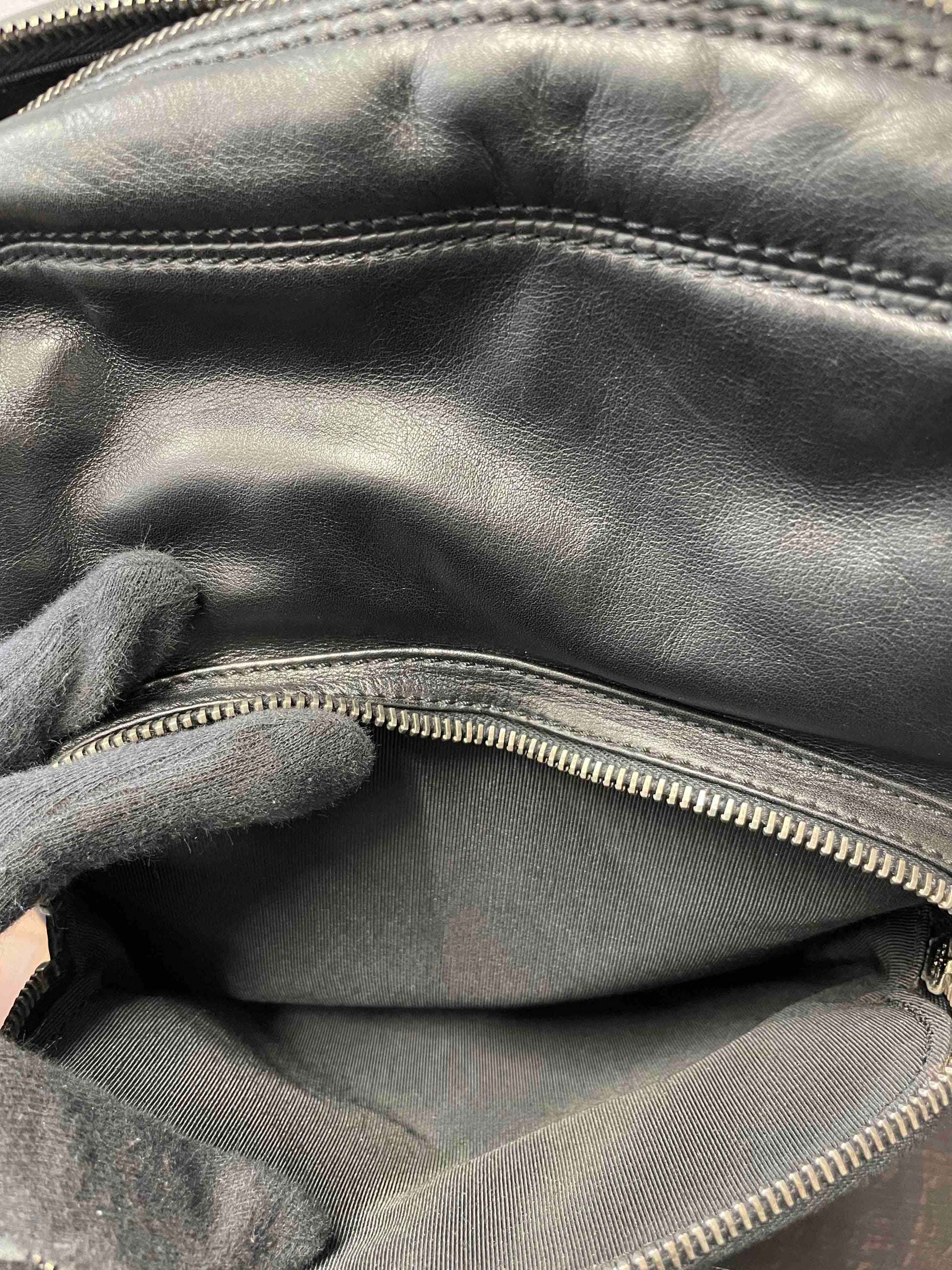This Chanel RE903269200 leather backpack combines luxury with practicality, perfect for lovers of vintage Chanel bags. This medium-sized backpack features a sleek black leather exterior with the iconic CC logo, silver hardware, and a comfortable leather strap. The spacious interior, lined in matching leather, offers ample storage for daily essentials. A timeless addition to any collection, this piece stands out among designer handbags.