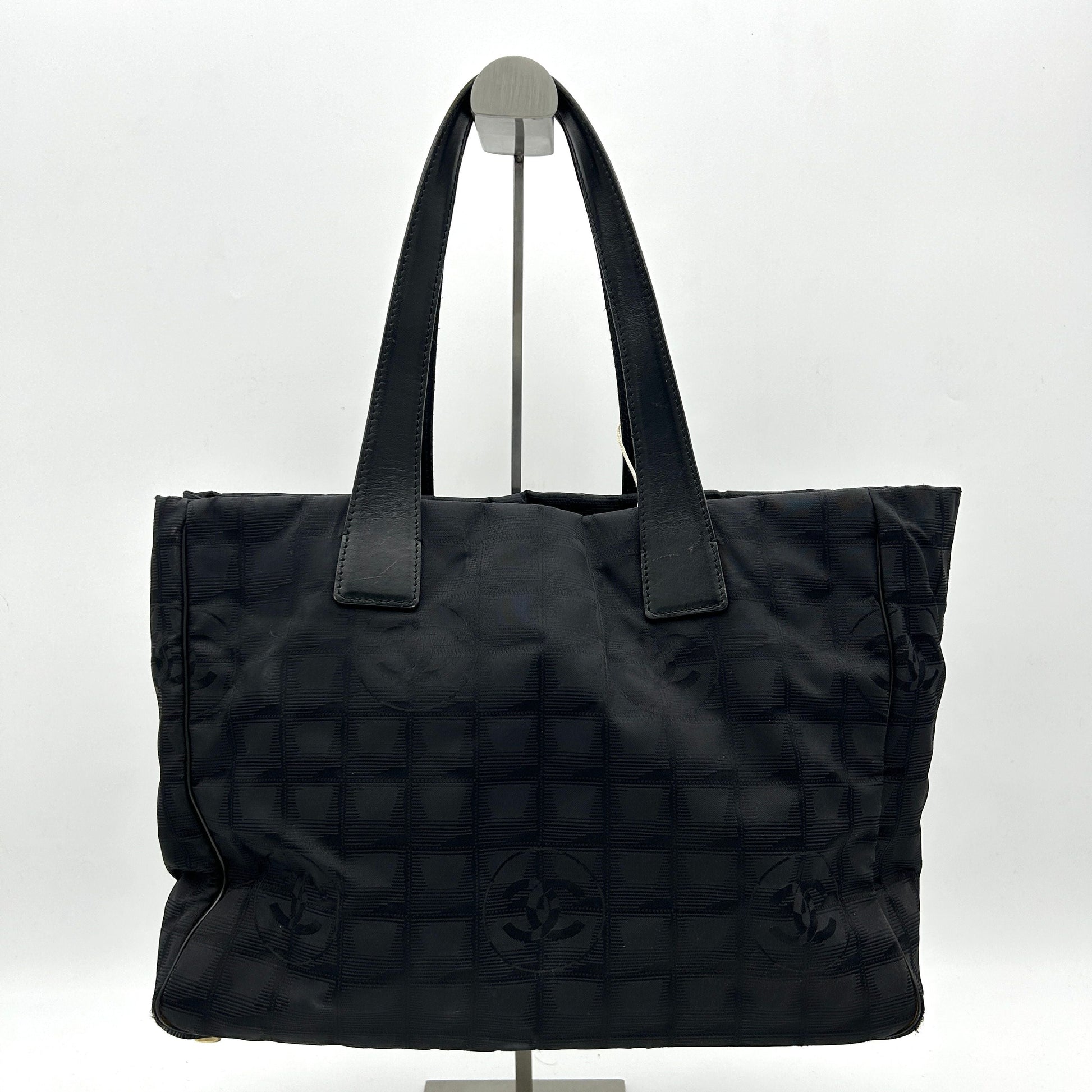 Discover the allure of vintage Chanel bags with this Chanel Tote Bag from the Travel Line collection. This designer handbag is crafted from durable black nylon with sleek leather accents, presenting a timeless black exterior and spacious interior—ideal for daily essentials. Notable for its elegant simplicity, the bag is perfect for those who love adding a touch of sophistication to their fashion ensembles. Explore this standout piece among designer handbags today for a taste of classic Chanel luxury.