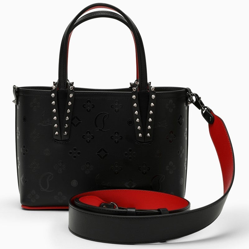 Small tote by Christian Louboutin in black leather, featuring allover tonal logo print, two handles, adjustable and detachable shoulder strap, one main compartment and iconic red interior lining.