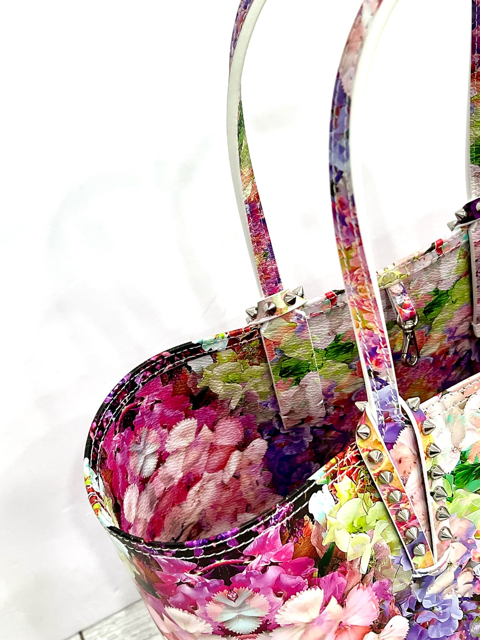 Add a vibrant statement to your collection with this stunning Christian Louboutin Mini Cabata Tote, exquisitely crafted in calfskin leather featuring a bold multicolor floral print. This eye-catching tote combines artistic flair with refined craftsmanship, making it a perfect accessory for both everyday wear and standout moments.