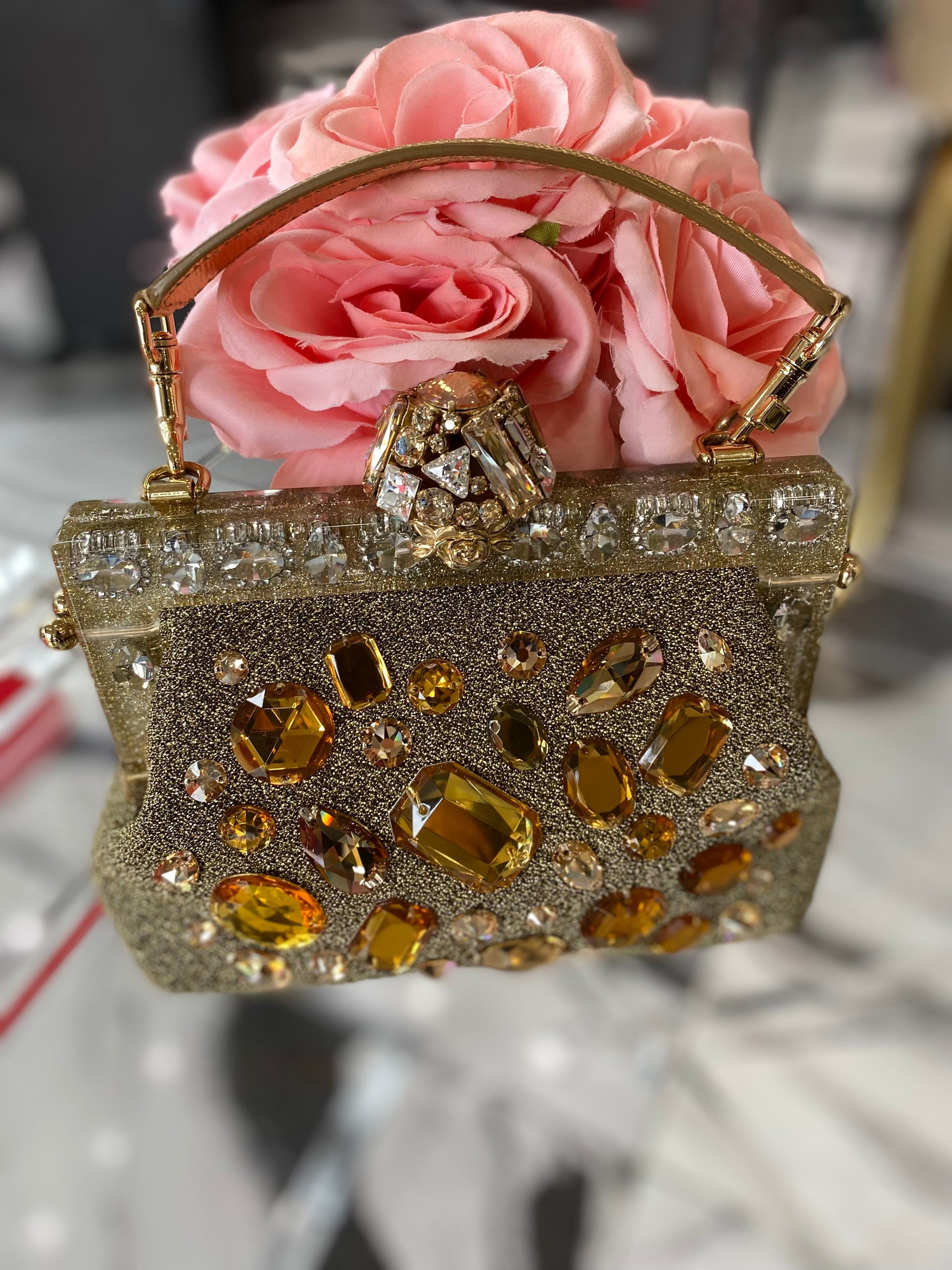 DOLCE & GABBANA GOLD VANDA CRYSTAL CLUTCH/HANDBAG