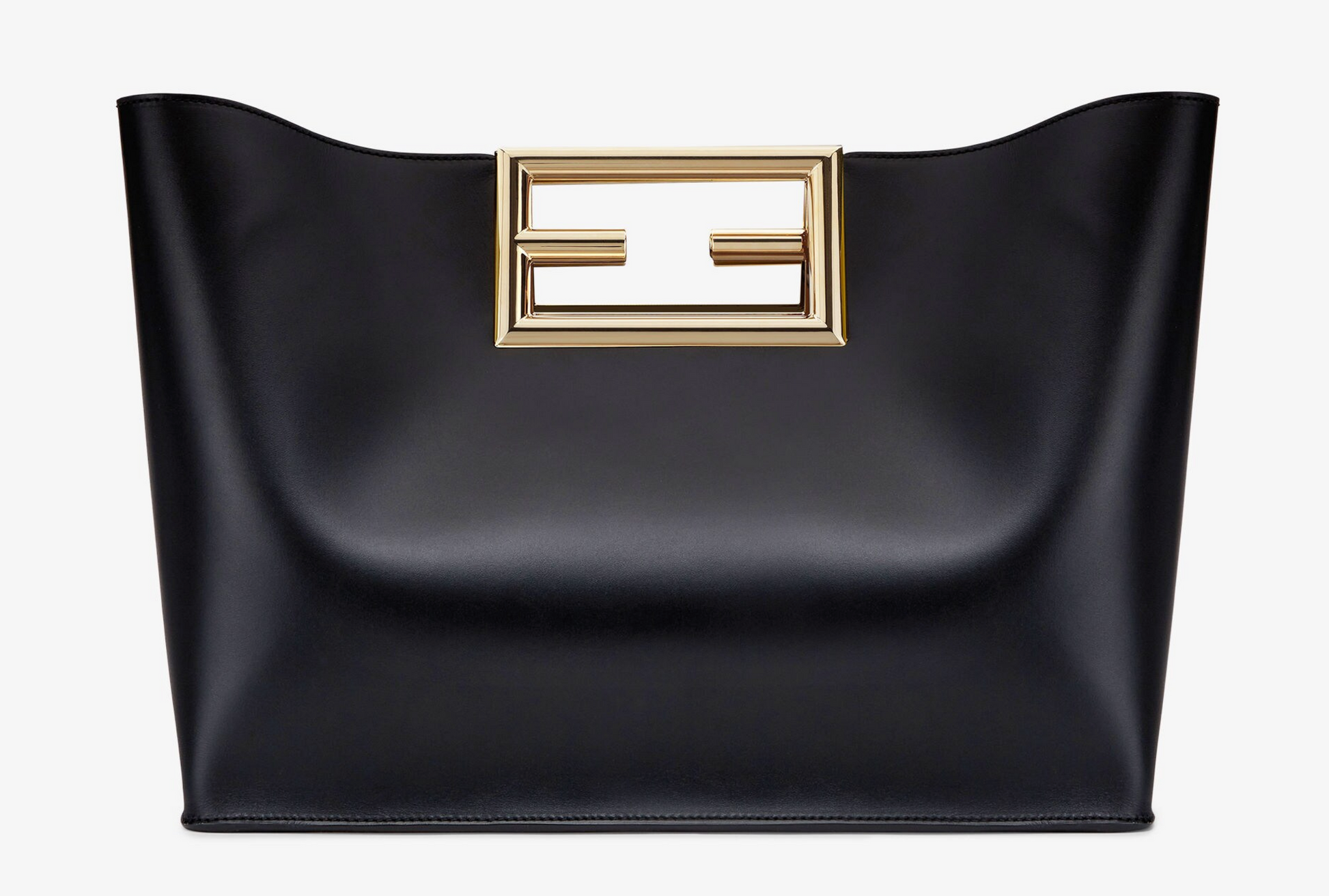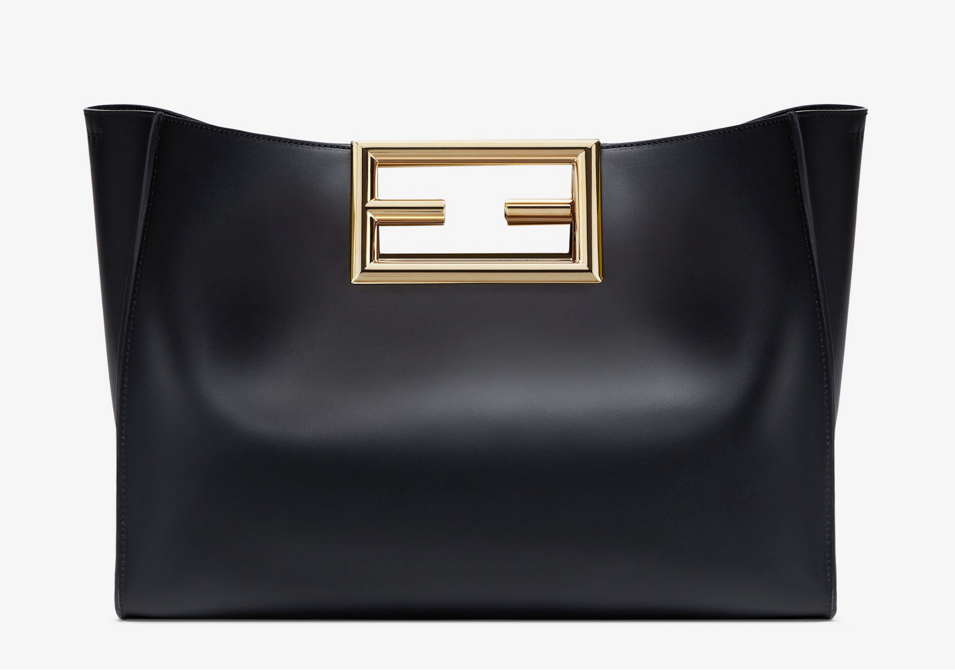 Medium Fendi Way Bag made of black leather with oversize FF logo metal handles.