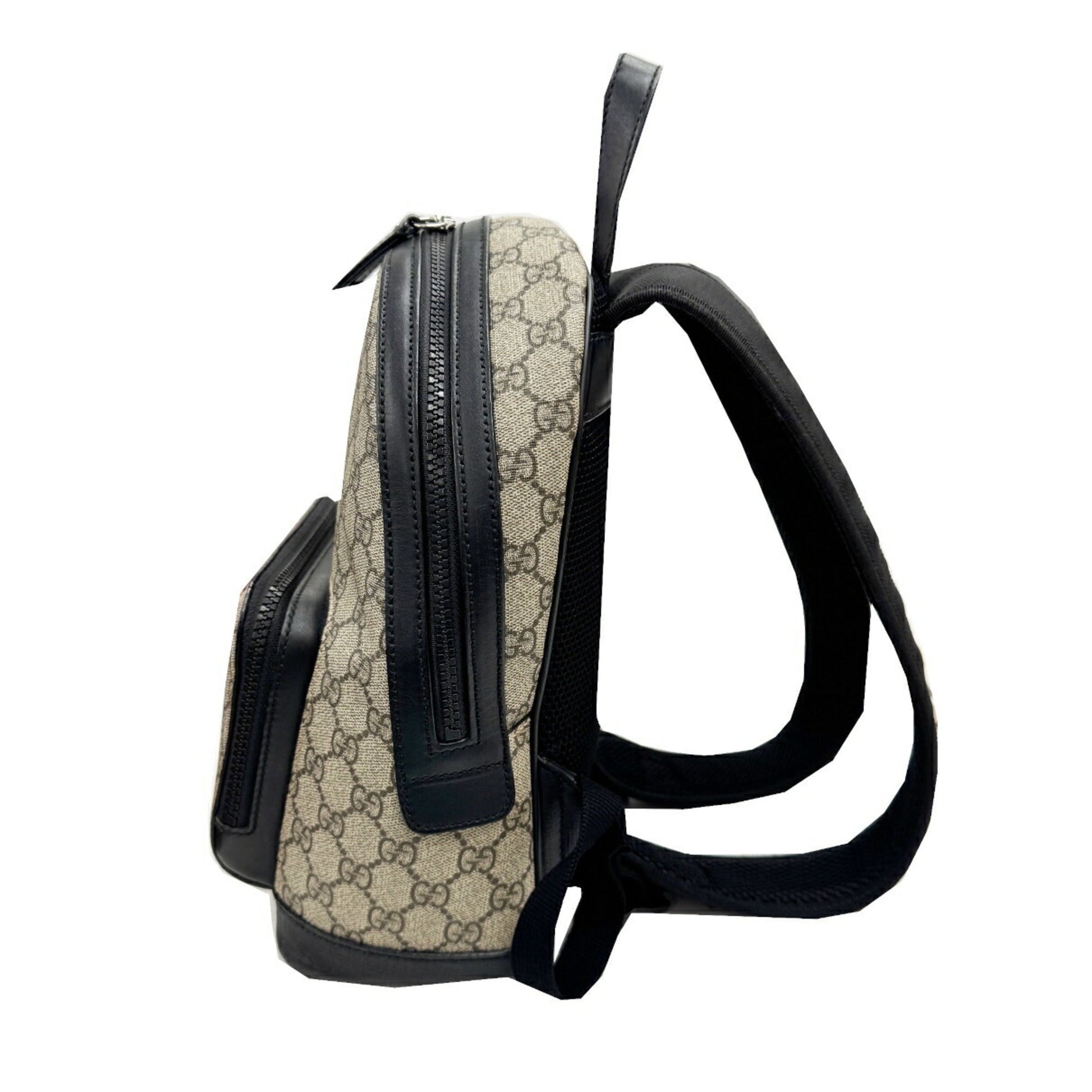 Gucci Beige Black Gg Supreme Leather Backpack