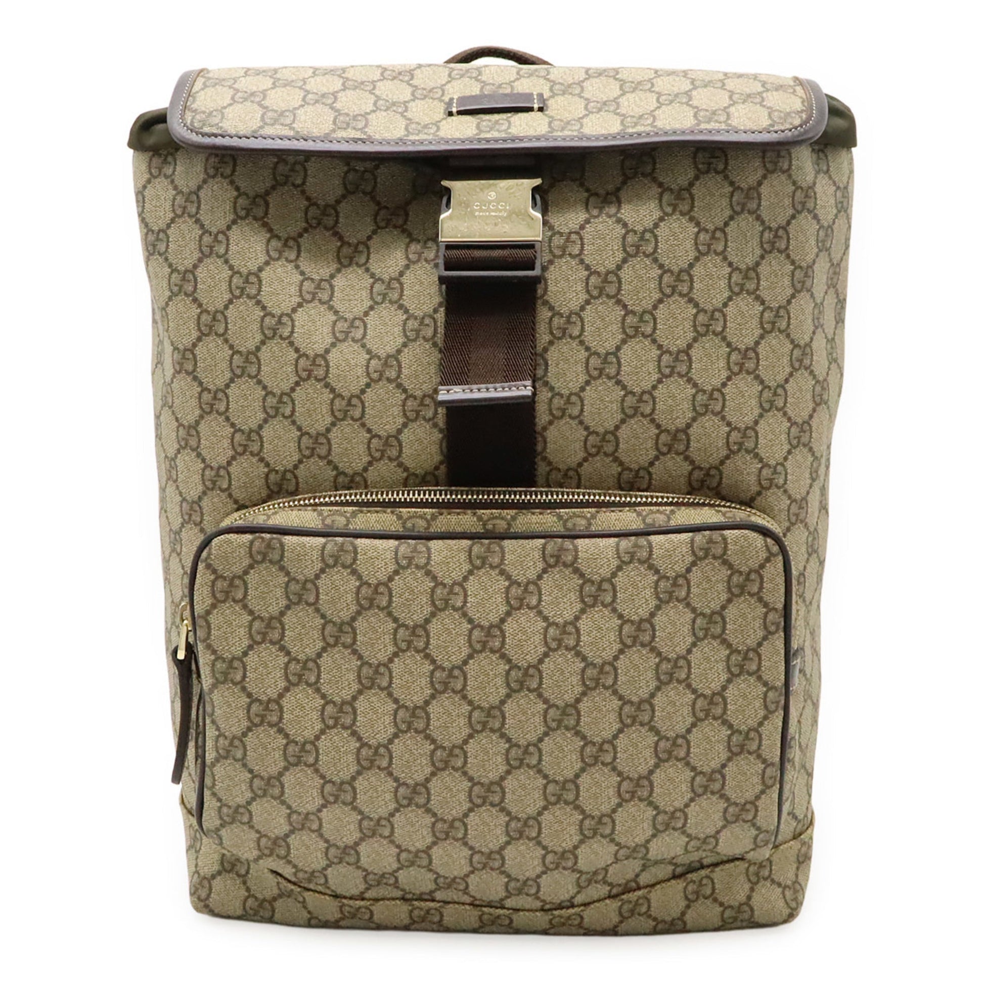 Gucci Beige Dark Brown Khaki Gg Supreme Leather Backpack