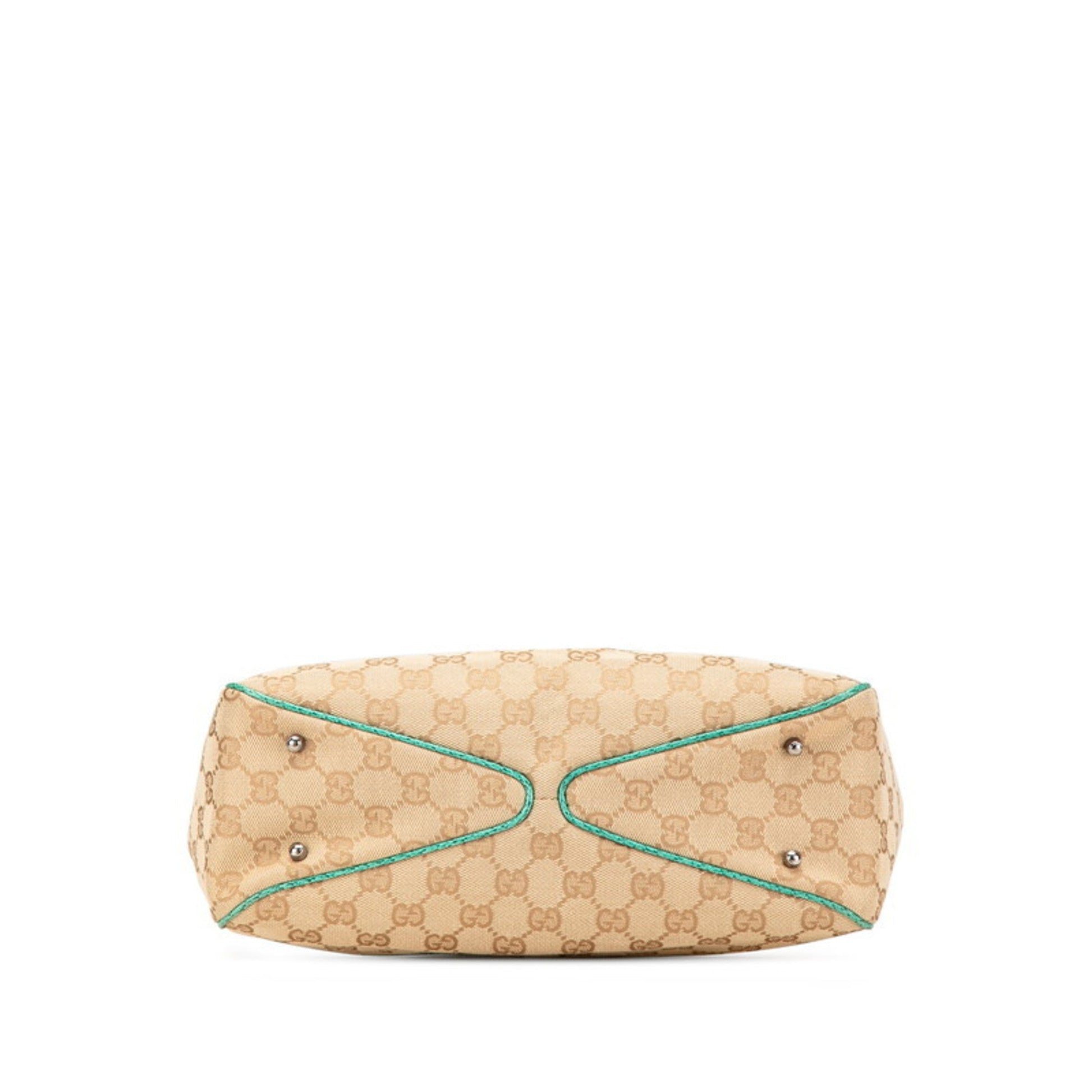 Gucci Beige Emerald Green Canvas Leather Tote Bag