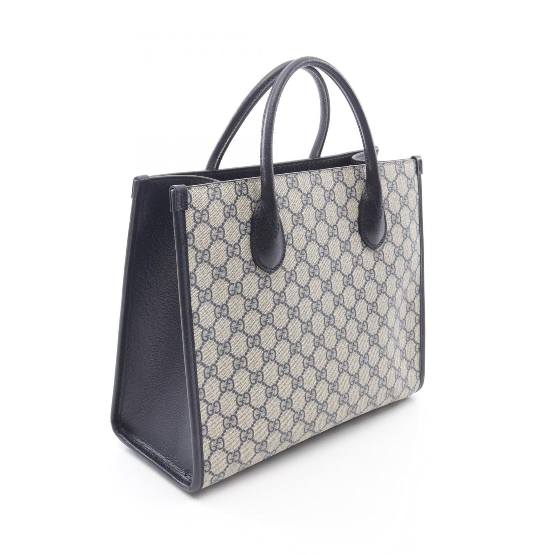 Brand: Gucci, Color: Beige, Navy, Material: PVC, Leather, Dimensions: 25cm x 31cm x 12.5cm / 9.84'' x 12.2'' x 4.92'', Condition: Rank A. Rank A Used - A few traces of usage, some scratches / dirt can be seen but overall in very good condition. Before purchasing, please refer to the images for the exact condition of the item. Before purchasing, please refer to the images of the accessories included with the item. Bag Common Damage Scratch: Insignificant