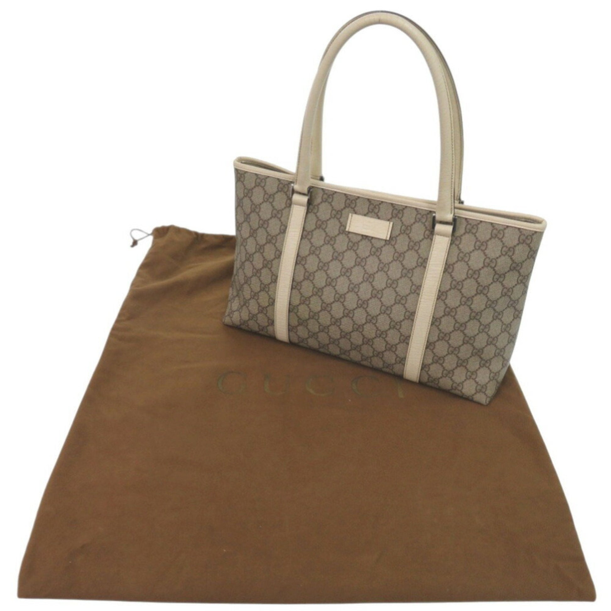 Brand: Gucci, Color: Beige, Material: PVC, Dimensions: 23cm x 38cm x 14cm / 9.05'' x 14.96'' x 5.51'', Condition: Rank AB. Rank AB Used - Traces of usage, scratches / dirt can be seen but generally in good condition. Before purchasing, please refer to the images for the exact condition of the item. Before purchasing, please refer to the images of the accessories included with the item. Bag Common Damage Scratch: Slight