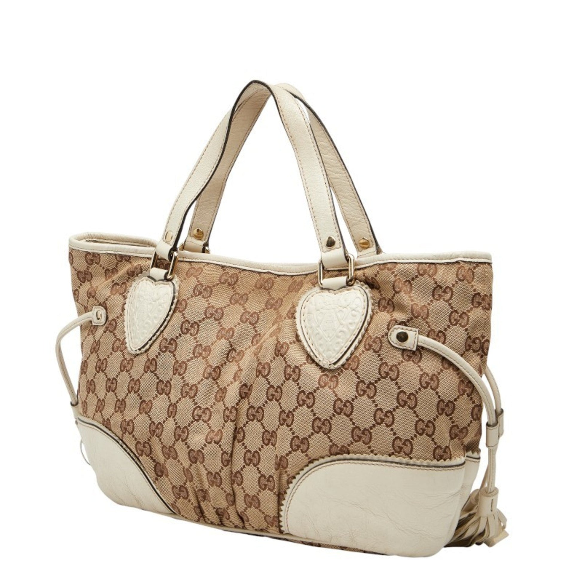 Gucci Beige White Gg Canvas Leather Handbag Tote Bag