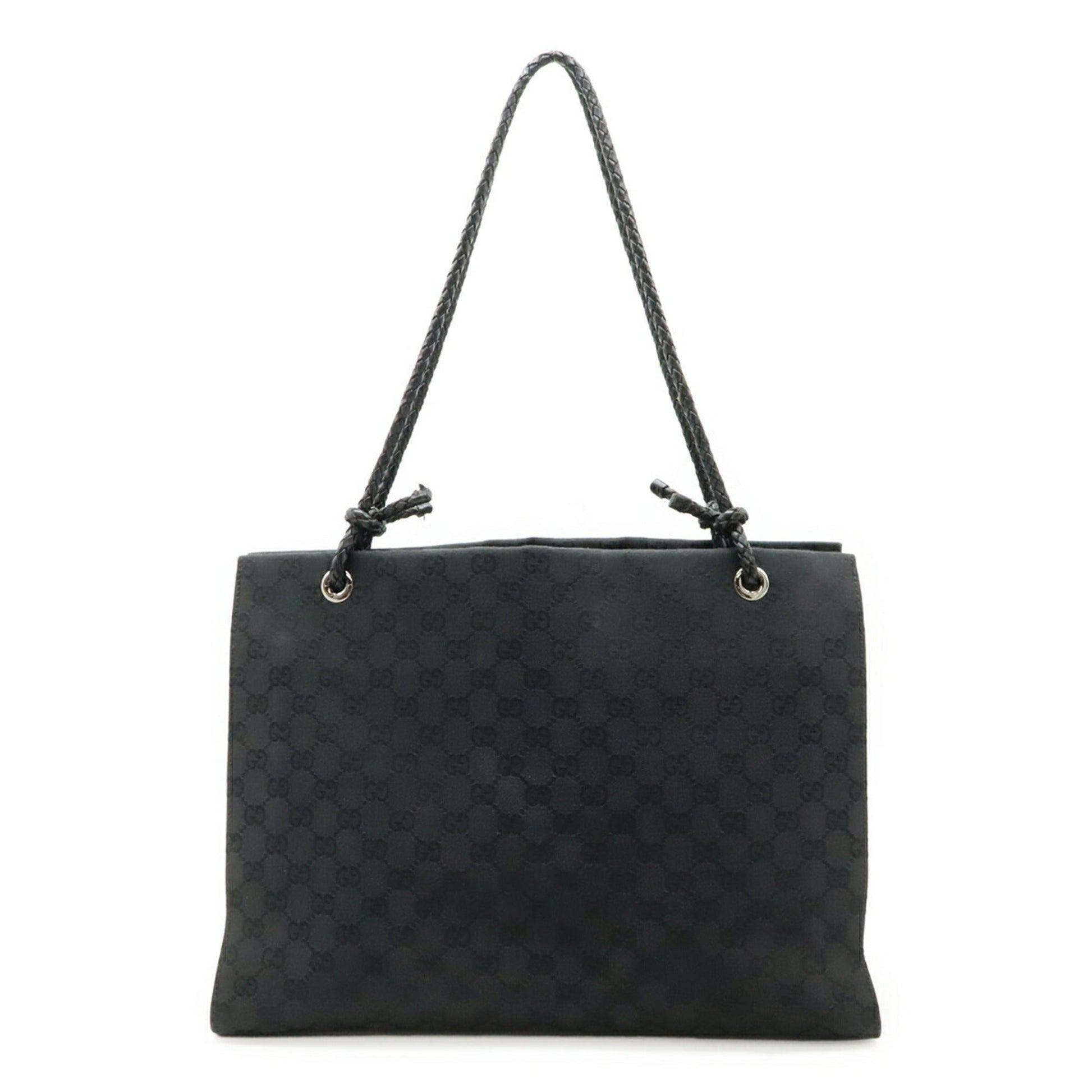 Gucci Black Canvas Leather Shoulder Bag Tote Bag