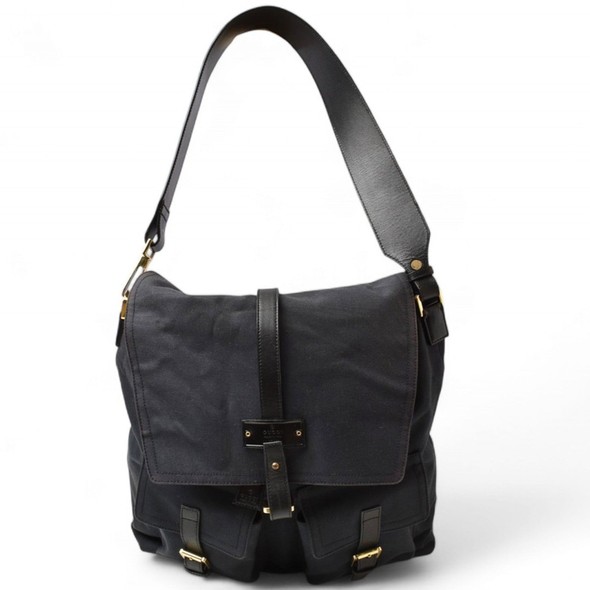 Gucci Black Cotton Canvas Shoulder Bag Sling Bag