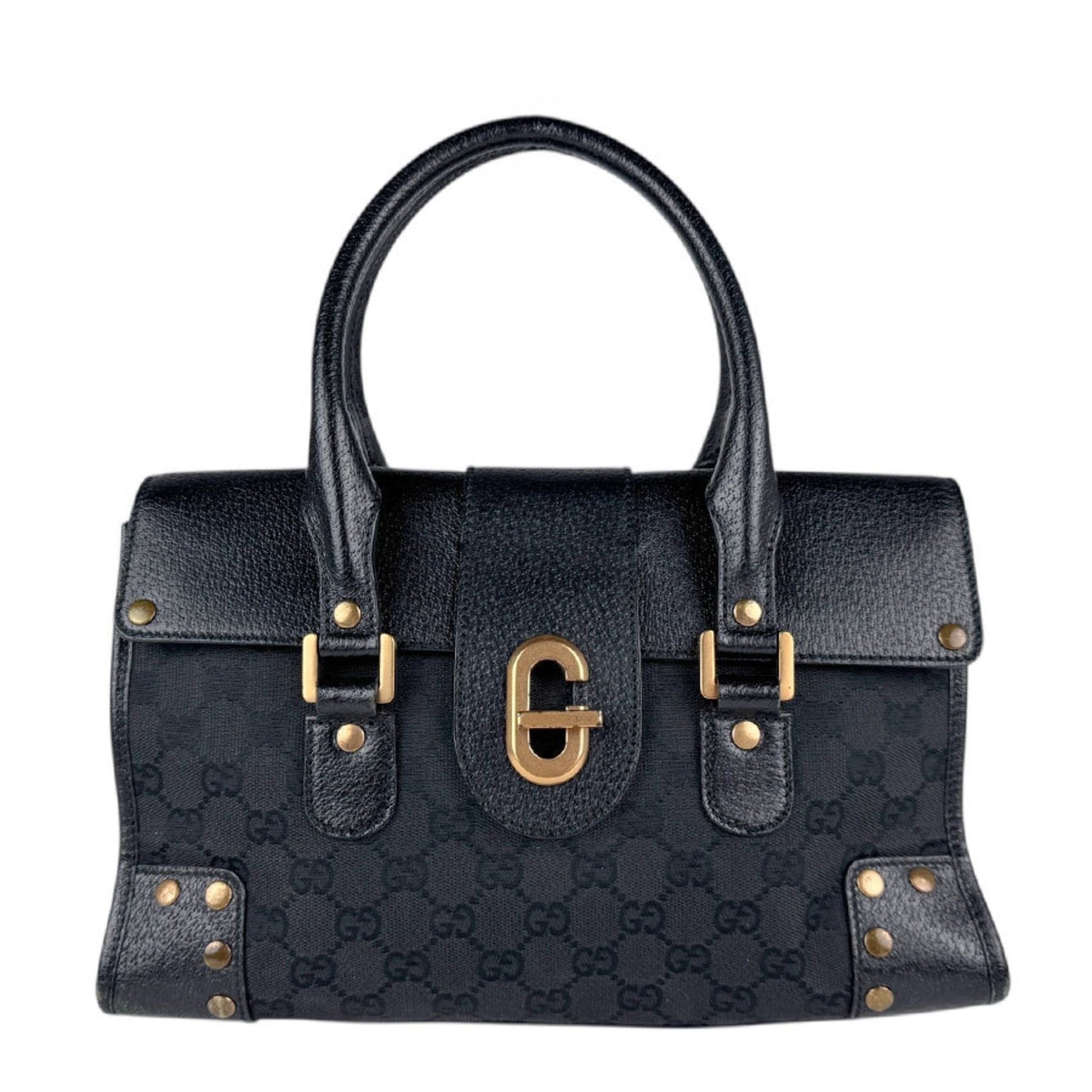 Gucci Black Gg Canvas Leather Handbag