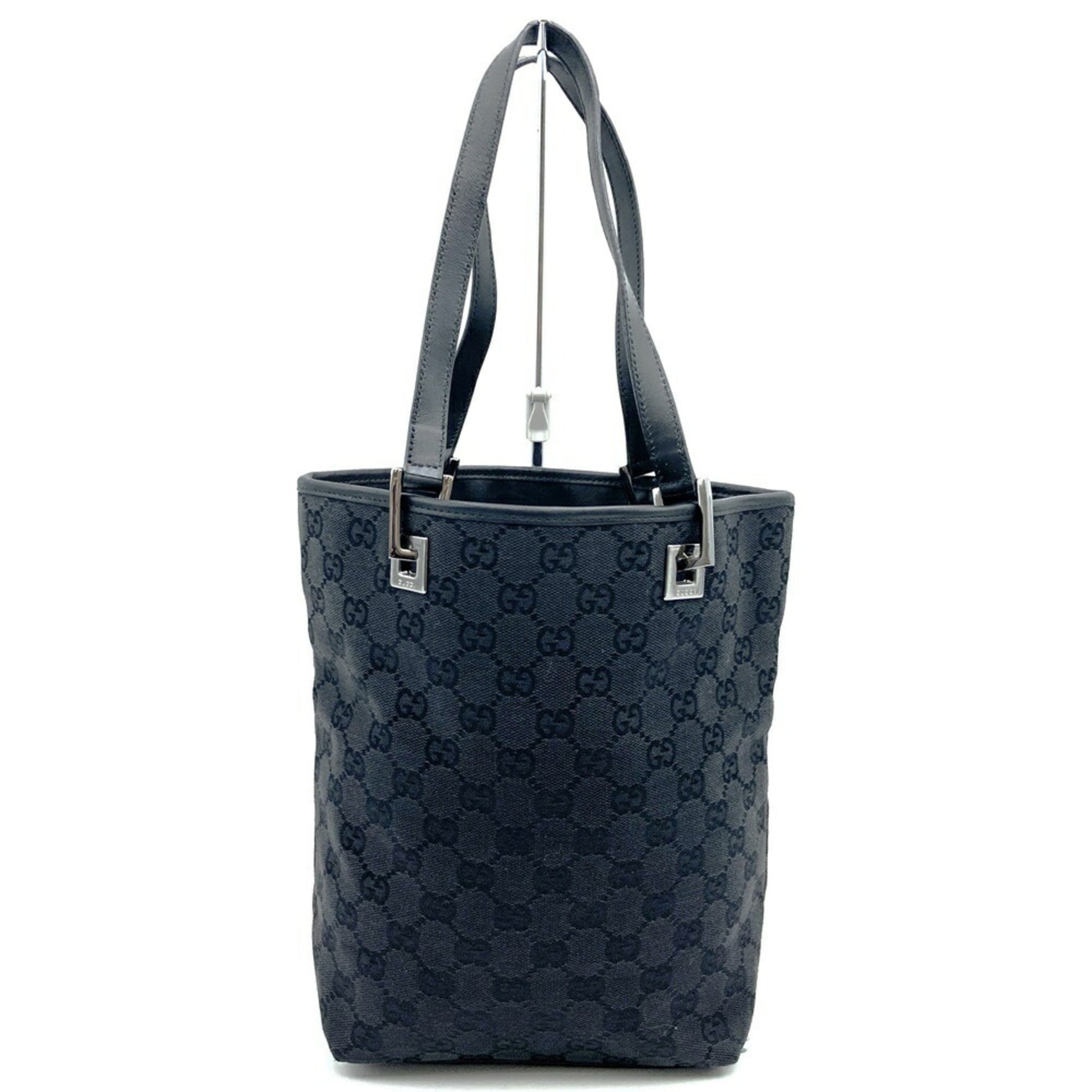 Gucci Black Gg Canvas Leather Handbag Shoulder Bag Tote Bag