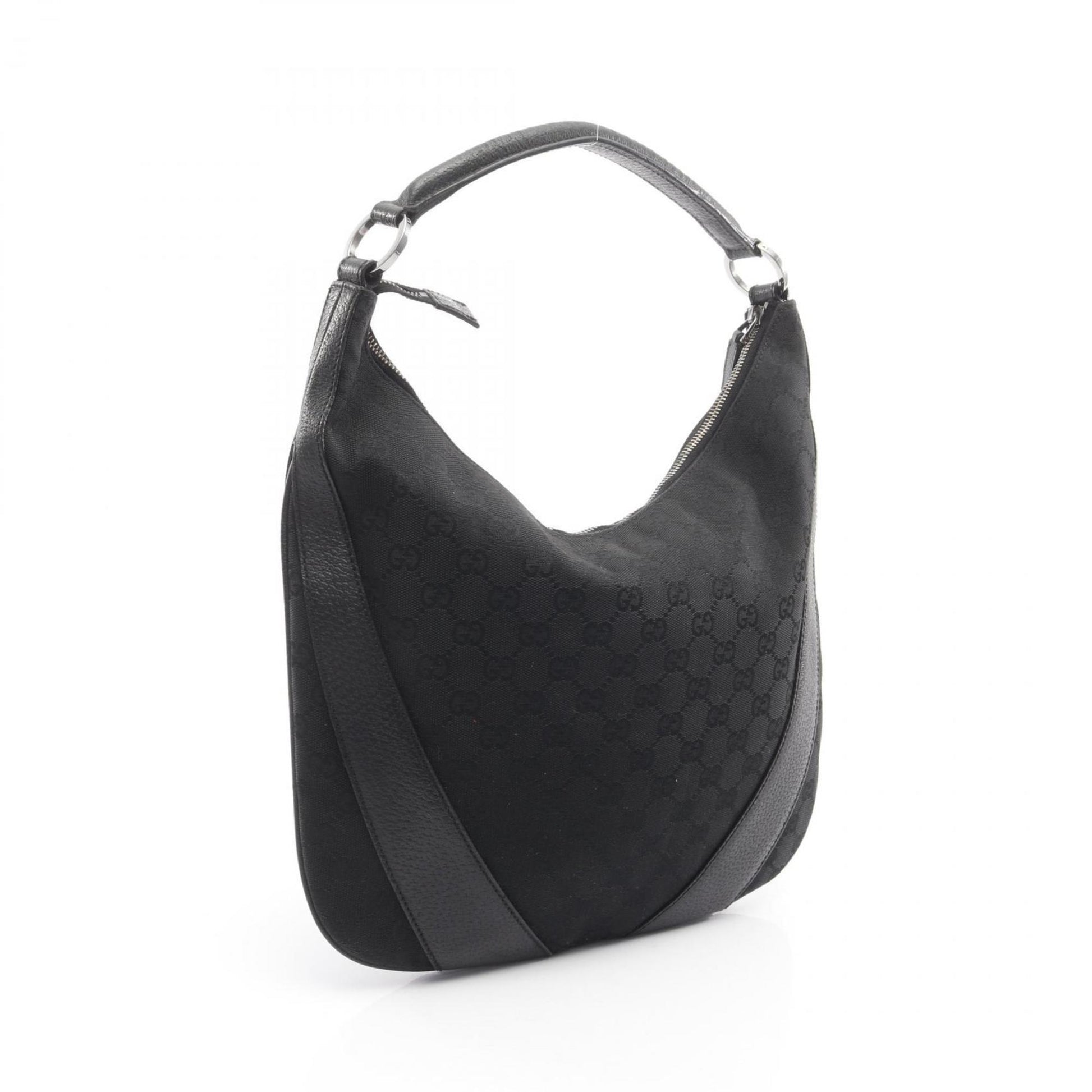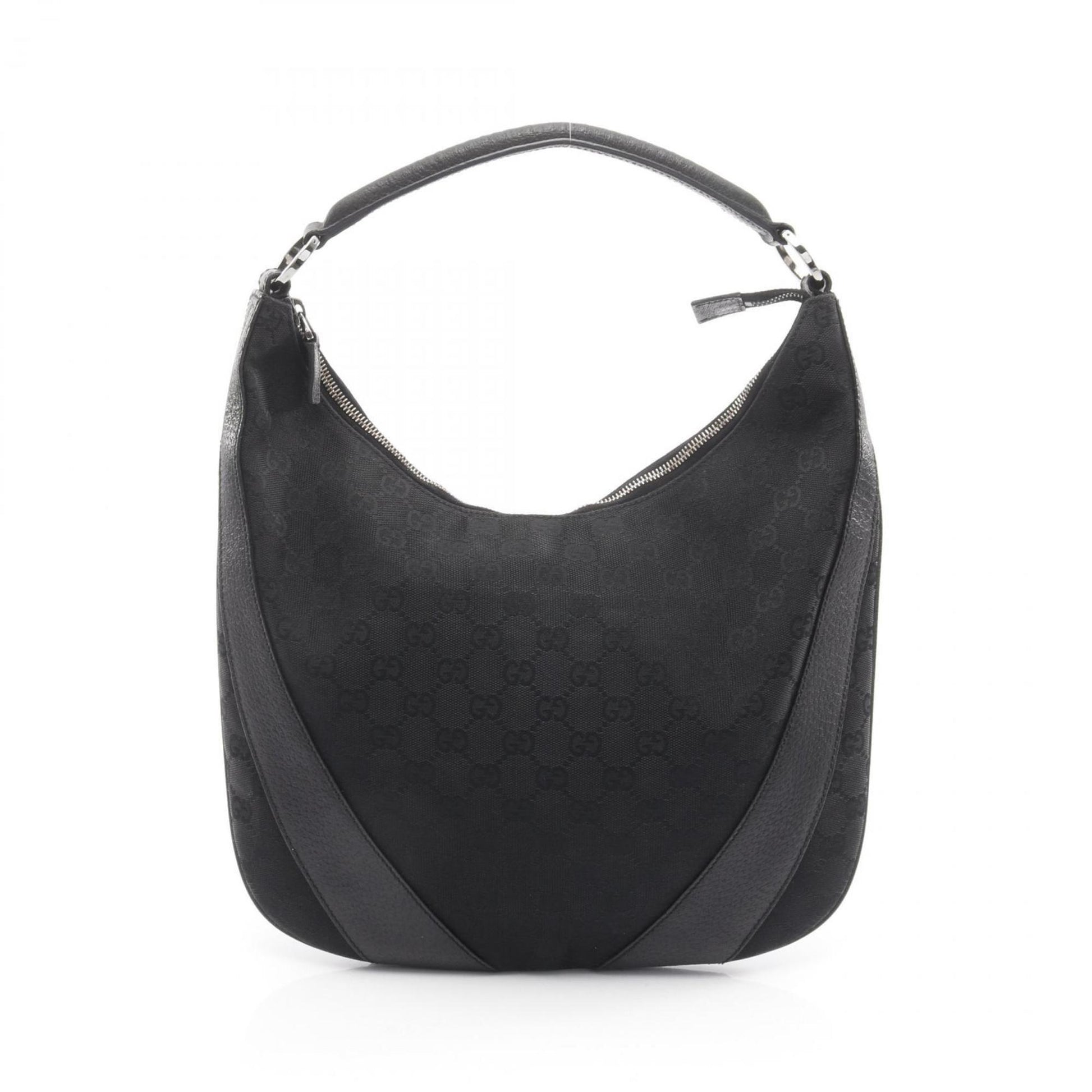 Gucci Black Gg Canvas Leather Shoulder Bag
