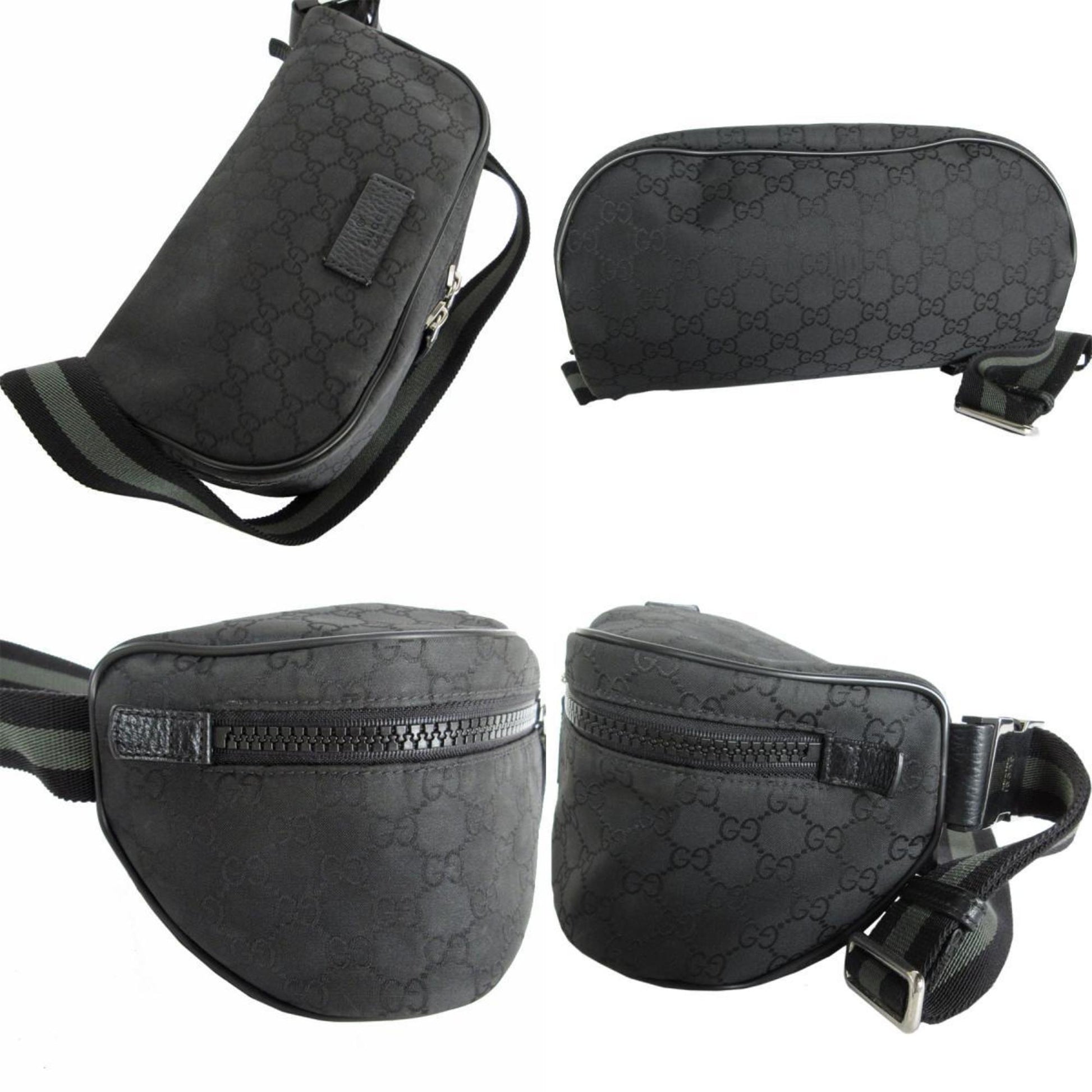 Brand: Gucci, Color: Black, Khaki, Material: Nylon canvas, Dimensions: 14cm x 26cm x 12cm / 5.51'' x 10.23'' x 4.72'', Condition: Rank AB. Rank AB Used - Traces of usage, scratches / dirt can be seen but generally in good condition. Before purchasing, please refer to the images for the exact condition of the item. Before purchasing, please refer to the images of the accessories included with the item. Damage Ranking: Slight