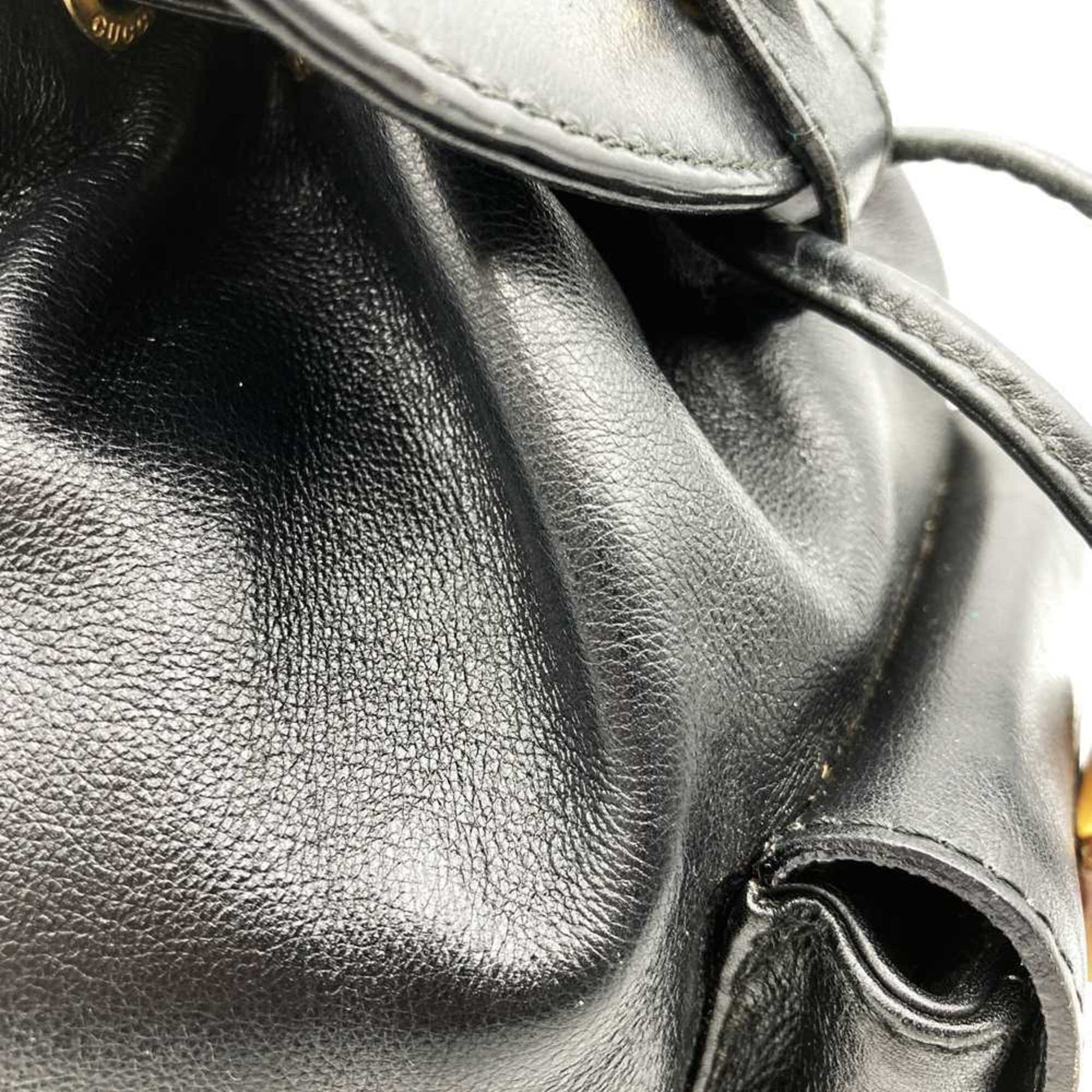 Gucci Black Leather Bamboo Backpack
