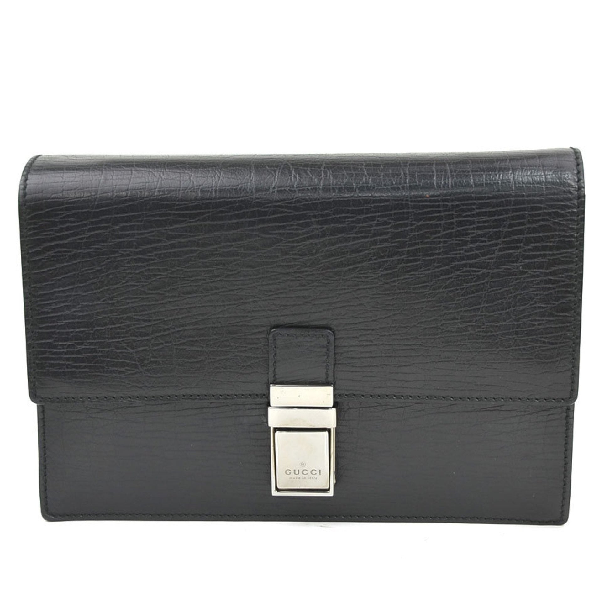 Brand: Gucci, Color: Black, Material: Leather, Dimensions: 18cm x 25cm x 3.5cm / 7.08'' x 9.84'' x 1.37'', Country of Origin: Italy, Condition: Rank AB. Rank AB Used - Traces of usage, scratches / dirt can be seen but generally in good condition. Before purchasing, please refer to the images for the exact condition of the item. Before purchasing, please refer to the images of the accessories included with the item. Bag Common Damage Scratch: Slight