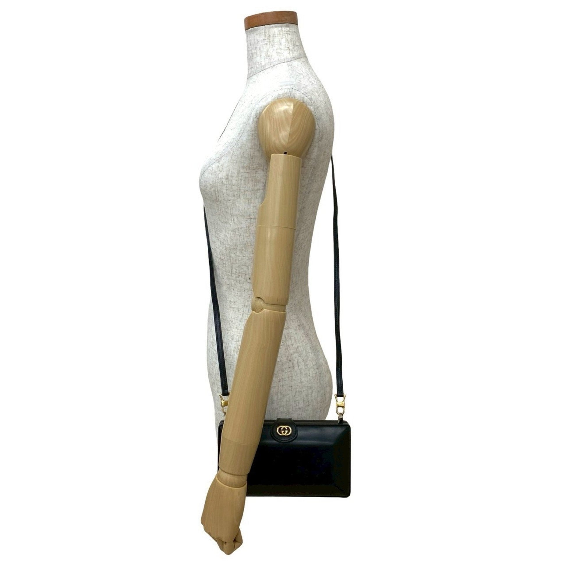 Brand: Gucci, Color: Black, Material: Leather, Dimensions: 11cm x 20cm x 6cm / 4.33'' x 7.87'' x 2.36'', Condition: Rank AB. Rank AB Used - Traces of usage, scratches / dirt can be seen but generally in good condition. Before purchasing, please refer to the images for the exact condition of the item. Before purchasing, please refer to the images of the accessories included with the item. Bag Common Damage Scratch: Slight