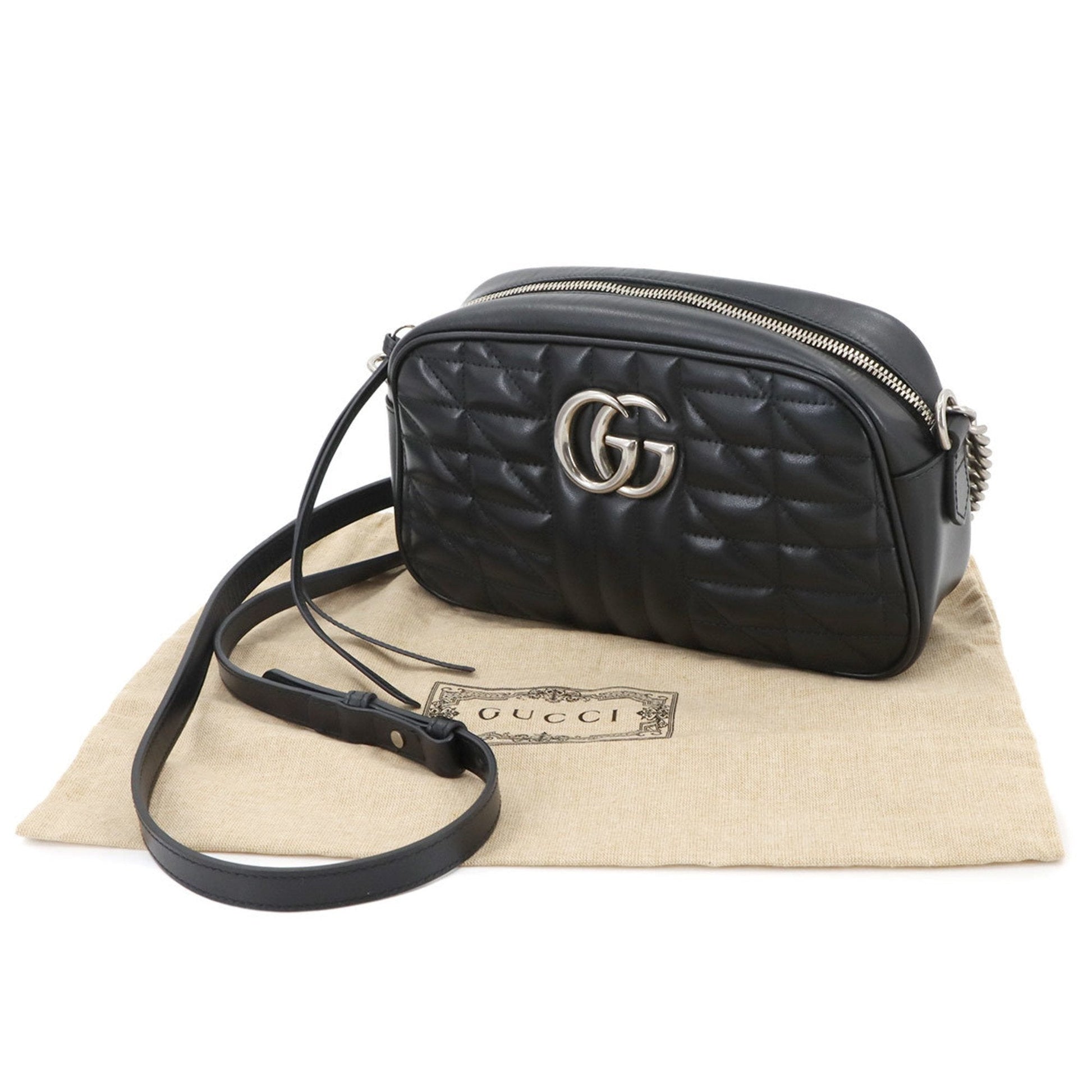 Brand: Gucci, Color: Black, Material: Leather, Dimensions: 13.5cm x 24cm x 7cm / 5.31'' x 9.44'' x 2.75'', Condition: Rank S. Rank S Used - Mint condition, like new item. Before purchasing, please refer to the images for the exact condition of the item. Before purchasing, please refer to the images of the accessories included with the item. Bag Common Damage Scratch: Insignificant