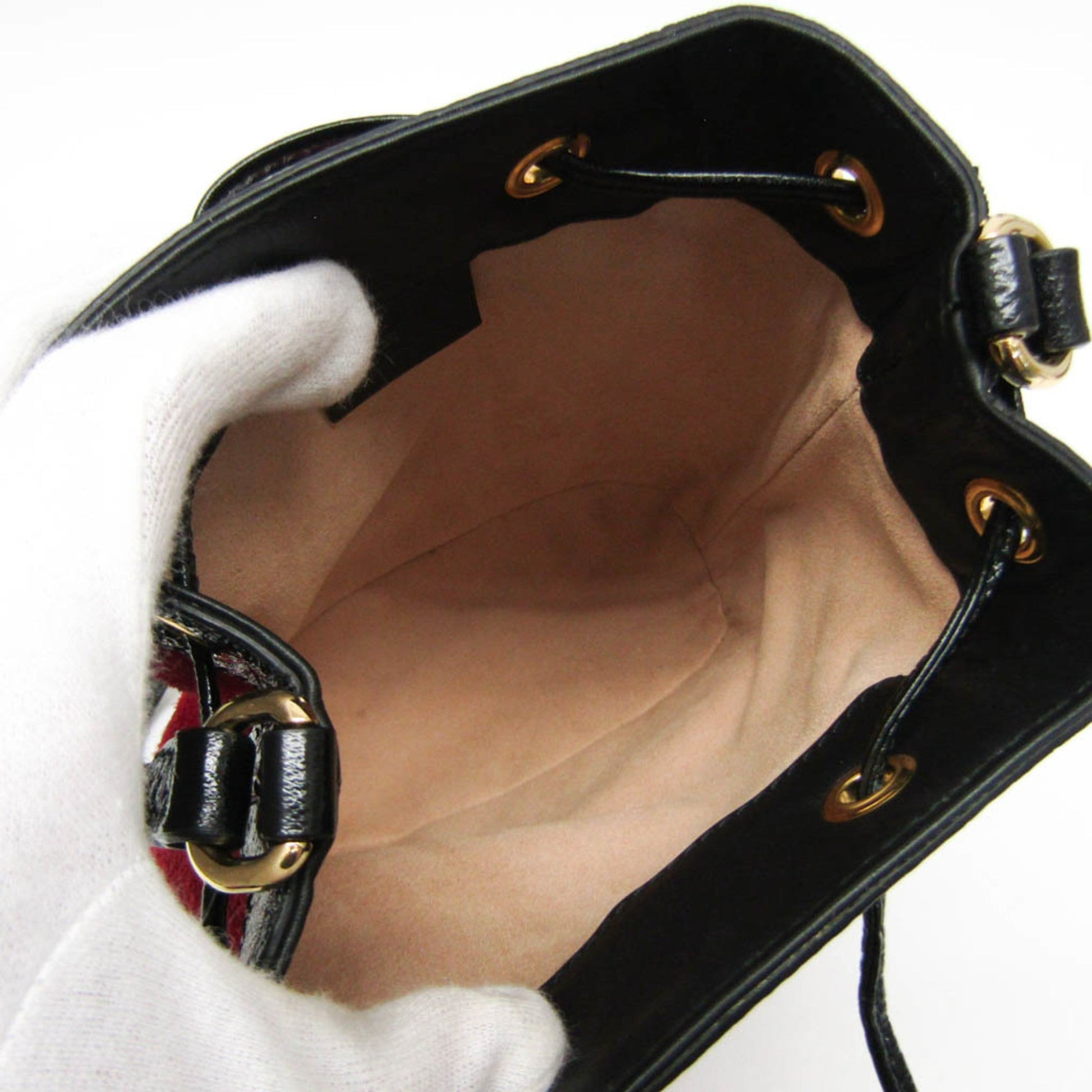 Brand: Gucci, Model Number: Drawstring bag type 550620, Color: Black, Navy, Red color, Material: Leather, Suede, Dimensions: 19cm x 16cm x 7.5cm / 7.48'' x 6.29'' x 2.95'', Serial Number: I026519427, Country of Origin: Italy, Condition: Rank A Used - A few traces of usage, some scratches / dirt can be seen but overall in very good condition. Before purchasing, please refer to the images for the exact condition of the item. Before purchasing, please refer to the images of the accessories included with the item. Damage Ranking: Slight