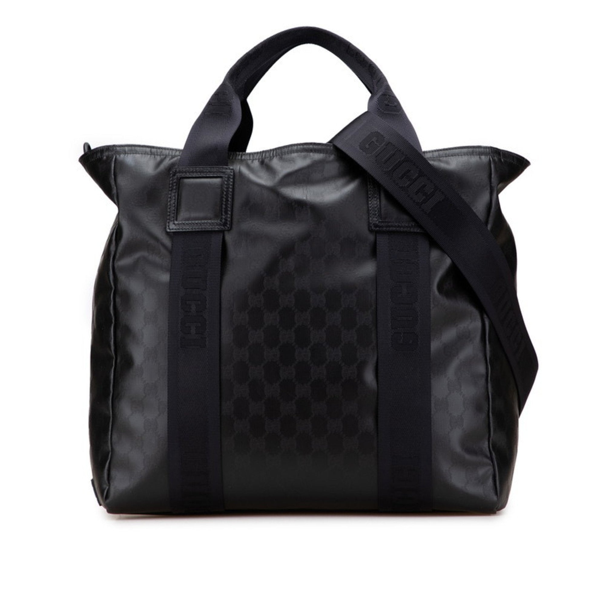 Brand: Gucci, Color: Black, Material: PVC, Leather, Dimensions: 35cm x 36cm x 16cm / 13.77'' x 14.17'' x 6.29'', Condition: Rank AB. Rank AB Used - Traces of usage, scratches / dirt can be seen but generally in good condition. Before purchasing, please refer to the images for the exact condition of the item. Before purchasing, please refer to the images of the accessories included with the item. Bag Common Damage Dirt: Slight
