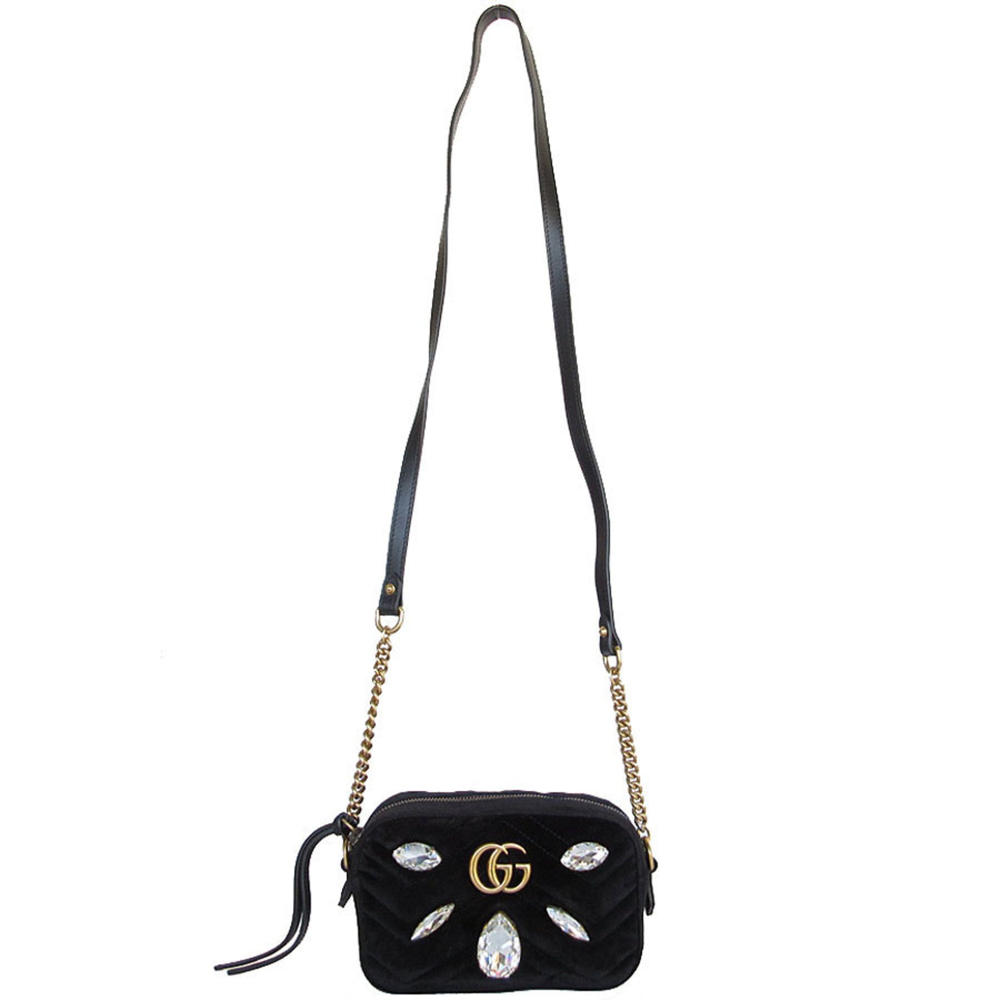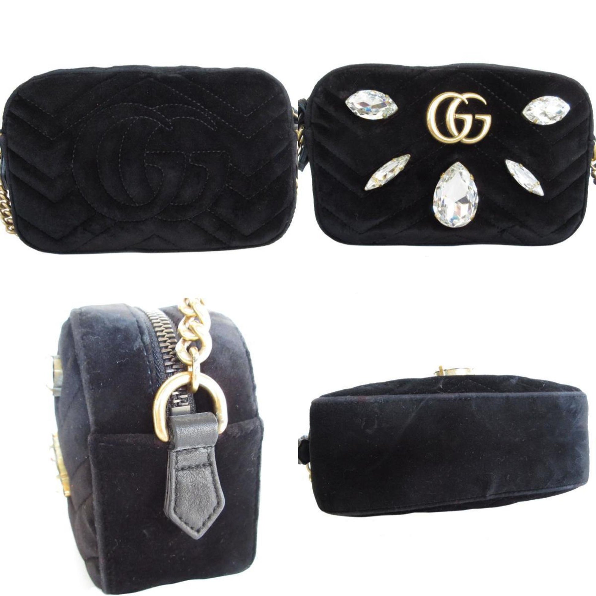 Brand: Gucci, Color: Black, Material: Velvet, Dimensions: 12cm x 18cm x 6cm / 4.72'' x 7.08'' x 2.36'', Condition: Rank A. Rank A Used - A few traces of usage, some scratches / dirt can be seen but overall in very good condition. Before purchasing, please refer to the images for the exact condition of the item. Before purchasing, please refer to the images of the accessories included with the item. Damage Ranking: Insignificant