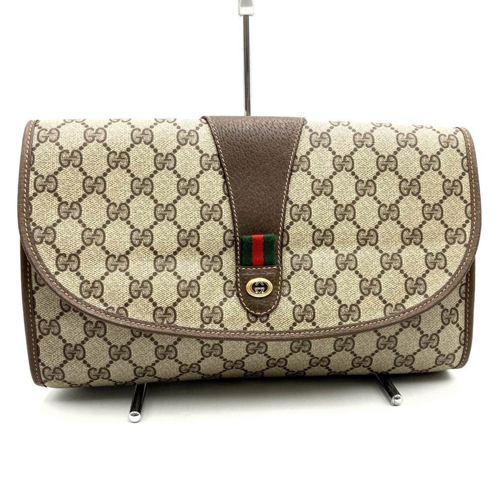 Brand: Gucci, Color: Brown, Material: GG Supreme, Canvas, PVC, Dimensions: 20cm x 29cm x 7cm / 7.87'' x 11.41'' x 2.75'', Condition: Rank AB. Rank AB Used - Traces of usage, scratches / dirt can be seen but generally in good condition. Before purchasing, please refer to the images for the exact condition of the item. Before purchasing, please refer to the images of the accessories included with the item. Damage Ranking: Insignificant, Slight