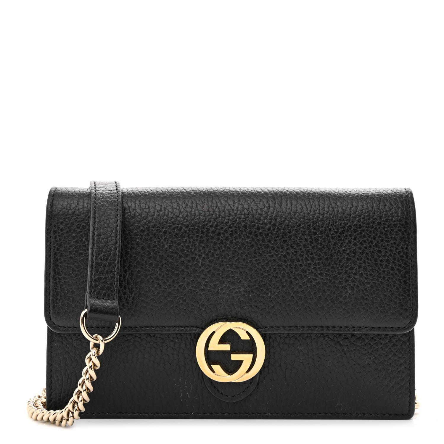 GUCCI CALFSKIN LEATHER INTERLOCKING G WALLET ON A CHAIN