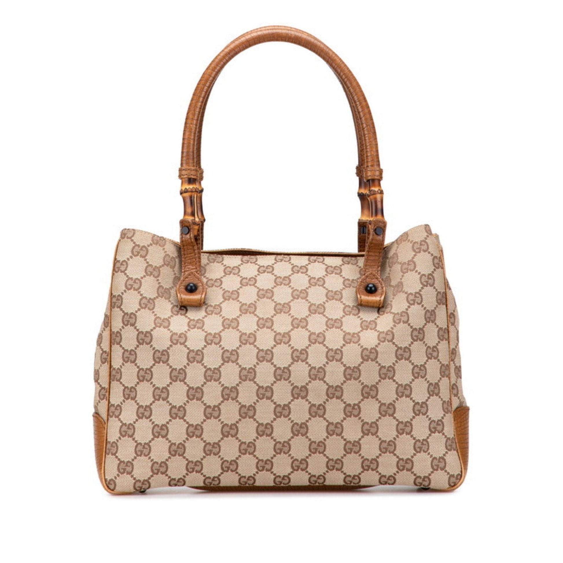 Brand: Gucci, Color: Beige brown, Material: GG canvas, Leather, Dimensions: 22cm x 31.5cm x 10cm / 8.66'' x 12.4'' x 3.93'', Condition: Rank AB. Rank AB Used - Traces of usage, scratches / dirt can be seen but generally in good condition. Before purchasing, please refer to the images for the exact condition of the item. Before purchasing, please refer to the images of the accessories included with the item. Damage Ranking: -