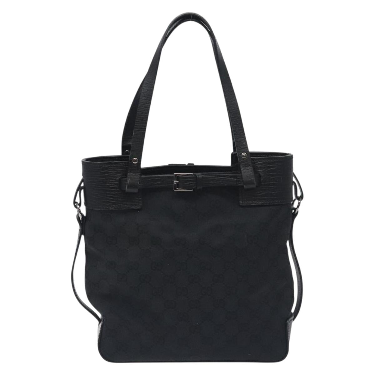 Brand: Gucci Model: GG canvas Color: Black Material: Canvas Inclusions: Dimensions: W26cm x H25cm x D9cm / Handle Drop 20cm Serial number: 107757 .2122. Country of origin: Italy Condition: B - good condition. Outside condition : loss of shape , rubbing , slight stain Inside condition : rubbing , slight stain Handle condition : rubbing , lose shape , slight stain , scratches Corner condition : rubbing , shaved Metal fittings condition : scratches Odor : There is keeping(storage) smell.