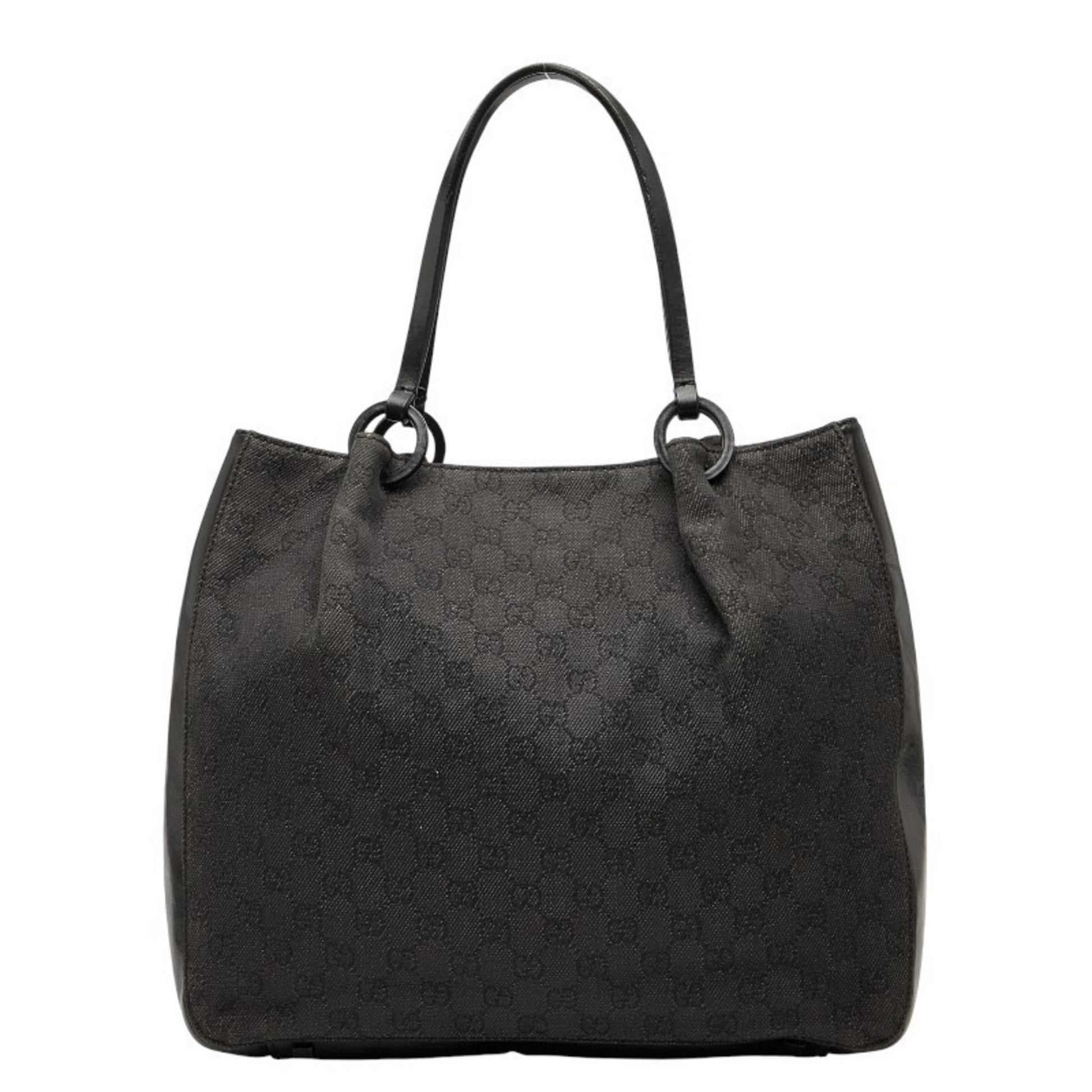 Gucci Gg Canvas Black Gg Canvas Leather Handbag Tote Bag