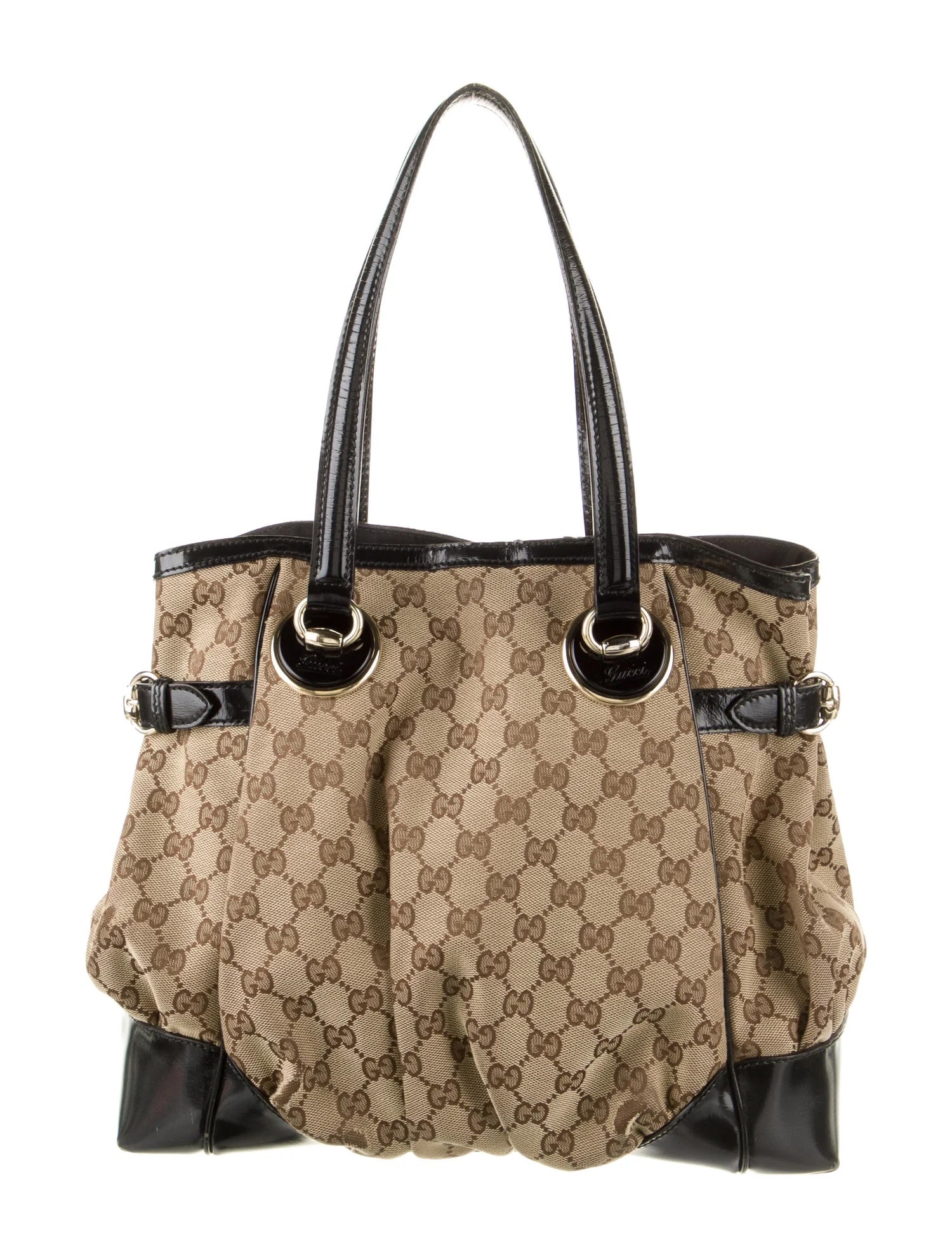 Material: GG monogram canvas with black patent leather trim