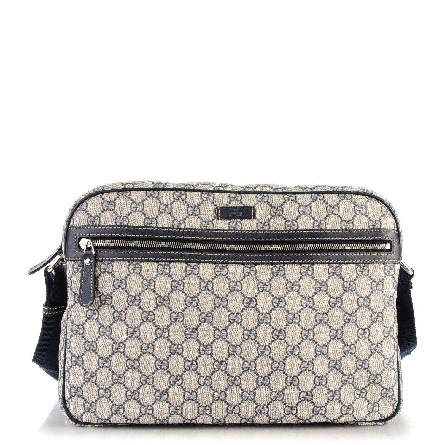 GUCCI GG PLUS MONOGRAM COATED CANVAS MESSENGER BAG NAVY